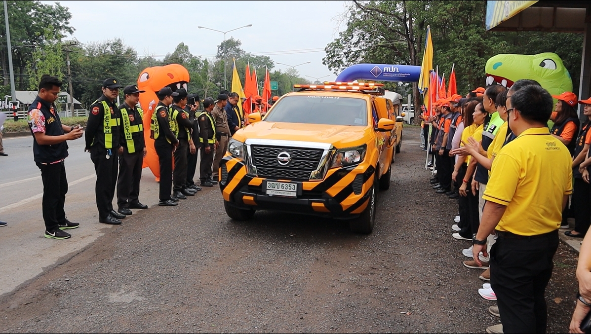 พร้อมด้วย คณะเจ้าหน้าที่ และภาคีเครือข่ายทุกภาคส่วนร่วมให้การต้อนรับ ณ บริเวณริมทางหลวงหมายเลข 12 ตอน ห้วยสีดา-ลำน้ำพาน ที่ กม.620+680 ด้านซ้ายทาง (จุดให้บริการทั่วไทย)