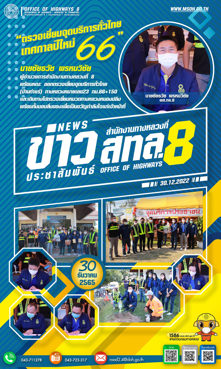 ผส.ทล.8 พร้อมคณะฯ ออกตรวจเยี่ยมหมวดทางหลวงโพนทอง และจุดบริการทั่วไทย