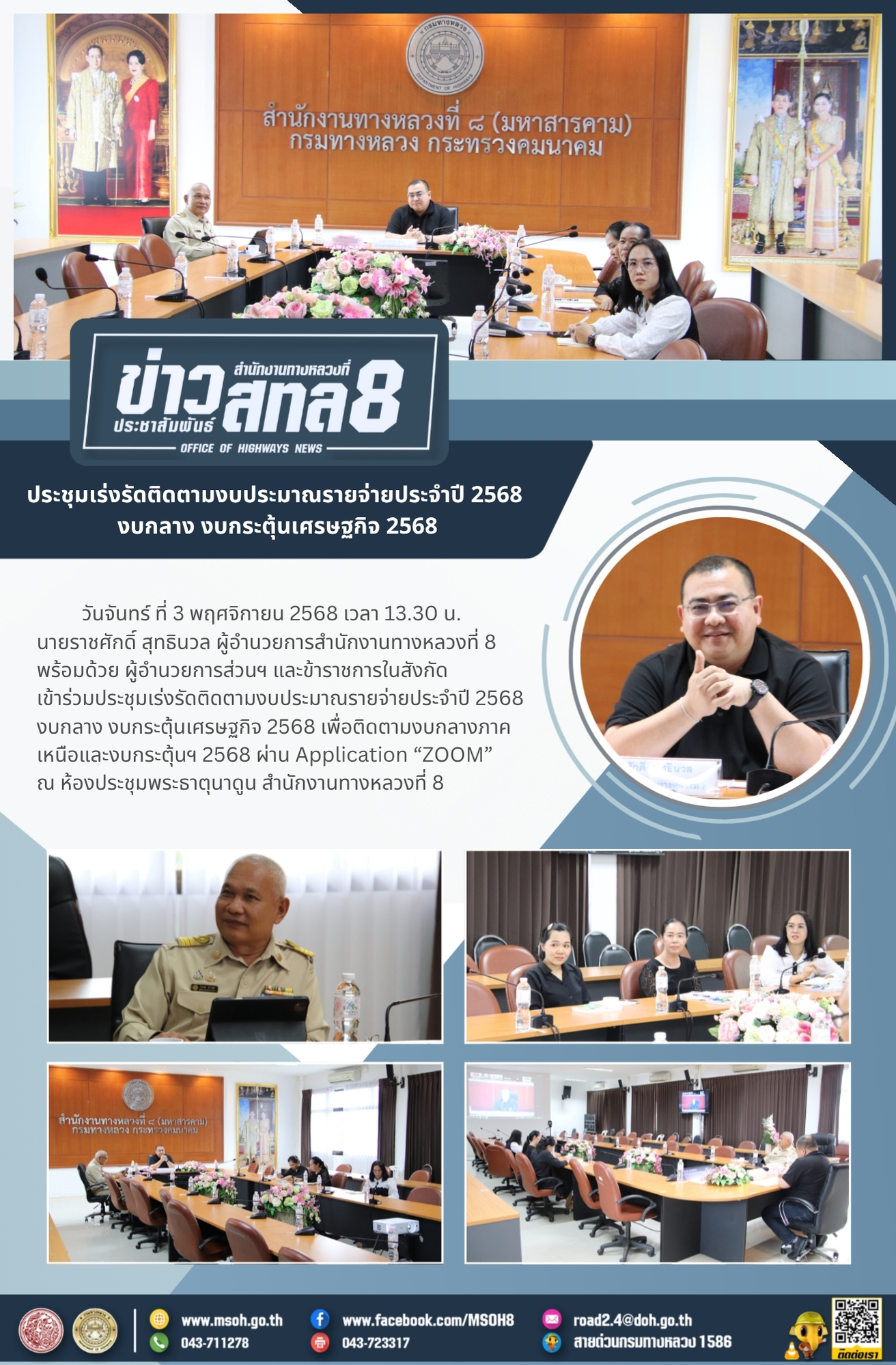 ประชุมเร่งรัดติดตามงบประมาณรายจ่ายประจำปี 2568 งบกลาง งบกระตุ้นเศรษฐกิจ 2568 เพื่อติดตามงบกลางภาคเหนือและงบกระตุ้นฯ 2568