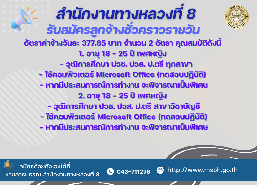 ประกาศรับสมัครลูกจ้างชั่วคราวรายวัน