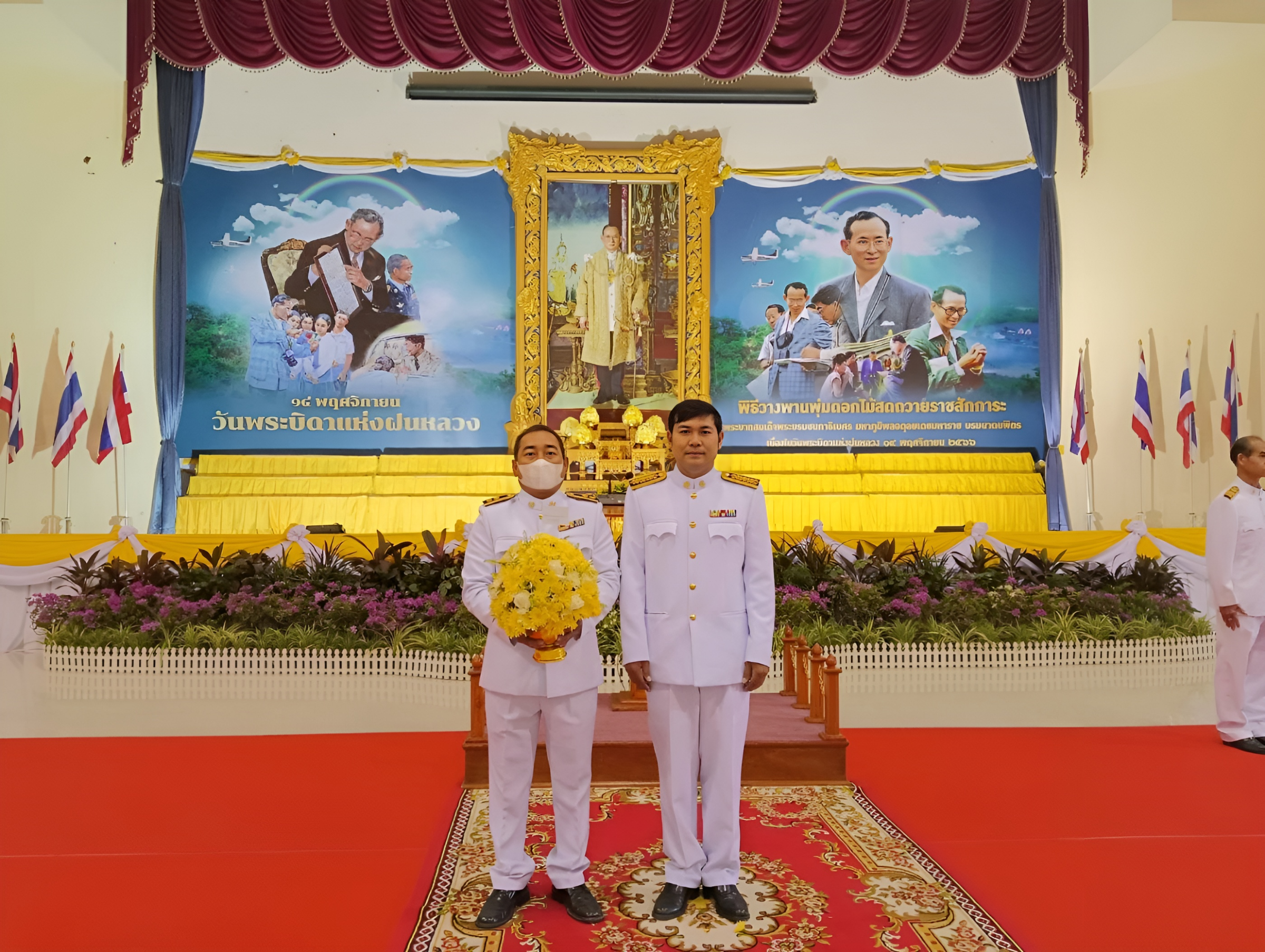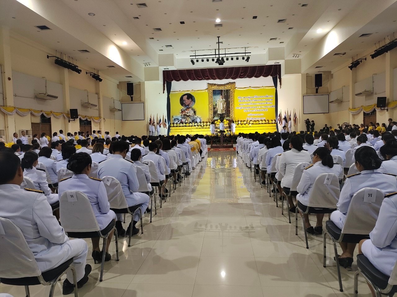 พิธีถวายพานพุ่มดอกไม้ถวายราชสักการะ และพิธีถวายบังคม เนื่องในวันคล้ายวันพระบรมราชสมภพพระบาทสมเด็จพระบรมชนกาธิเบศร มหาภูมิพลอดุลยเดชมหาราช บรมนาถบพิตร วันชาติ และวันพ่อแห่งชาติ ณ หอประชุมจังหวัดมหาสารคาม