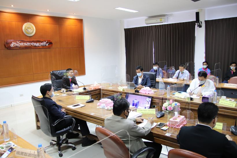 ผู้อำนวยการส่วนสำรวจและออกแบบ ผู้อำนวยการส่วนตรวจสอบและวิเคราะห์ทางวิศวกรรม ผู้อำนวยการส่วนควบคุมงานก่อสร้าง บริษัทผู้รับจ้าง และเจ้าหน้าที่ ที่เกี่ยวข้อง ร่วมประชุม ณ ห้องประชุมสำนักงานทางหลวงที่ 8 ผ่านแอปพลิเคชั่น Zoom Cloud Meeting