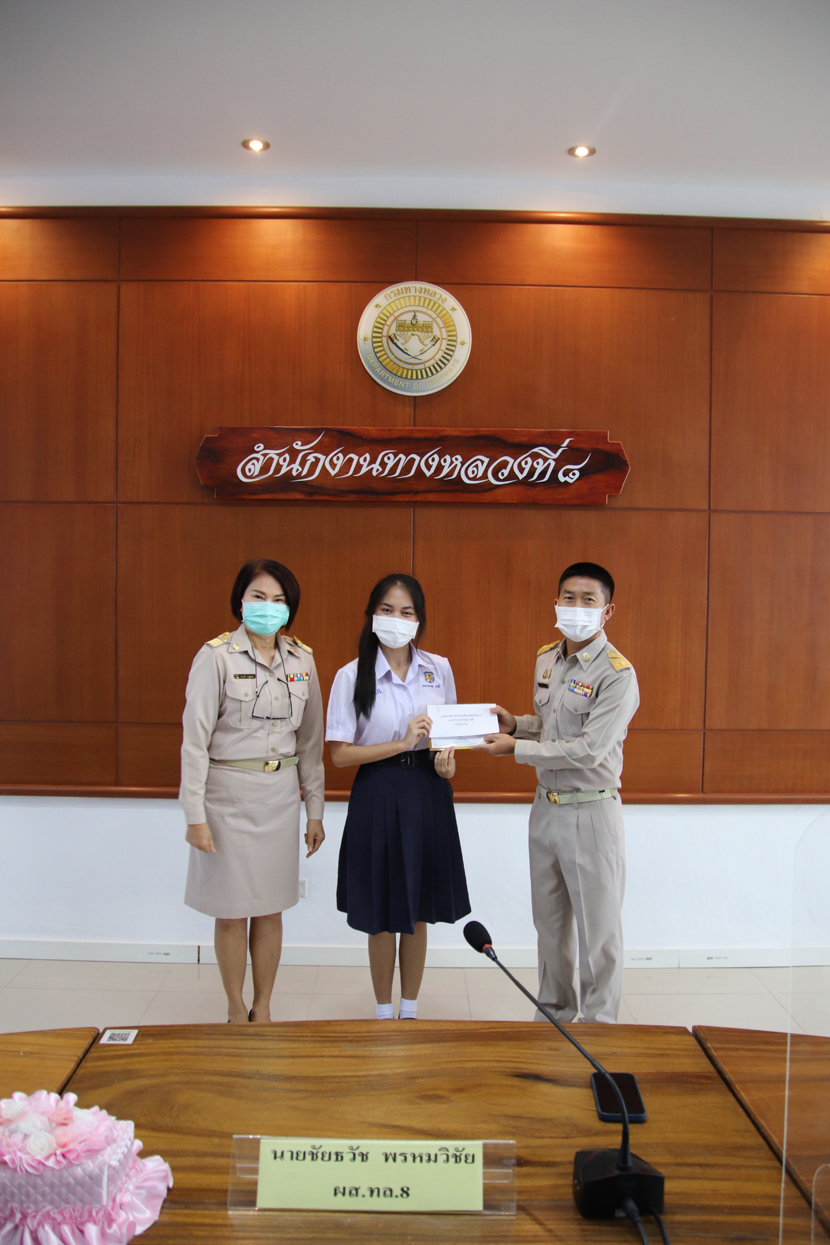 วันที่ 26 ธันวาคม 2565นายชัยธวัช พรหมวิชัย ผู้อำนวยการสำนักงานทางหลวงที่ 8 มอบทุนการศึกษา ให้แก่บุตรสมาชิกสหกรณ์ออมทรัพย์กรมทางหลวง ประจำปี 2565 ประเภททุนรางวัลเรียนดี และประเภททุนสนับสนุนการศึกษา ณ ห้องประชุมพระธาตุนาดูน สำนักงานทางหลวงที่ 8
