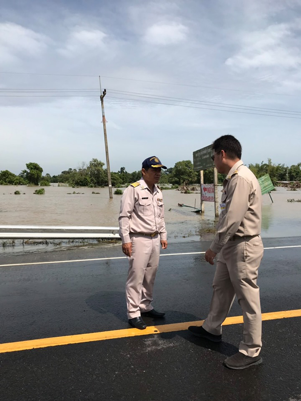 นายบัญชา สุทัยบำรุง ผู้อำนวยการสำนักงานทางหลวงที่ 8 พร้อมด้วยนายกฤตภาส อุตรวีระการ รองผู้อำนวยการสำนักงานทางหลวงที่ 8 ตำแหน่งที่ 2 นายศักดิพงษ์ ธีรเนตร ผู้อำนวยการแขวงทางหลวงยโสธร และนายมนูญ วานิช รองผู้อำนวยการฝ่ายปฏิบัติการ ลงพื้นที่ติดตามสถานการณ์น้ำท่วมบนทางหลวงหมายเลข 202 ตอน โนนชัยศรี – บ้านบ่อ ระหว่าง กม.254+500 - 258+000