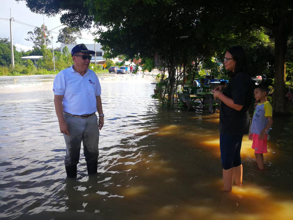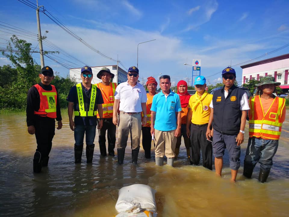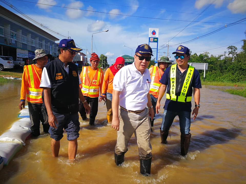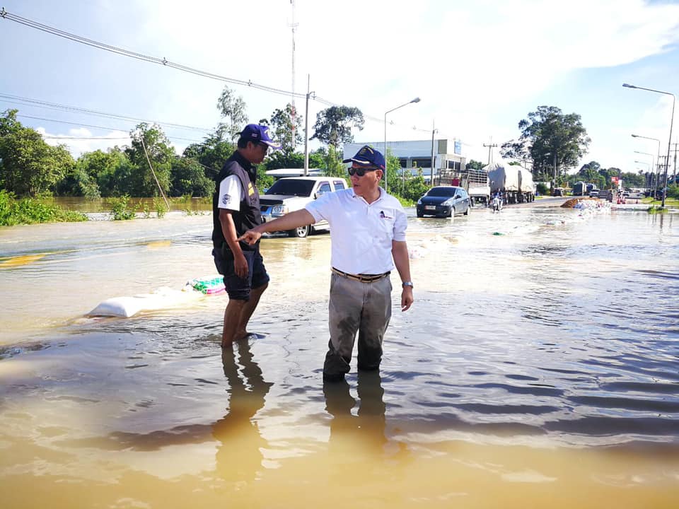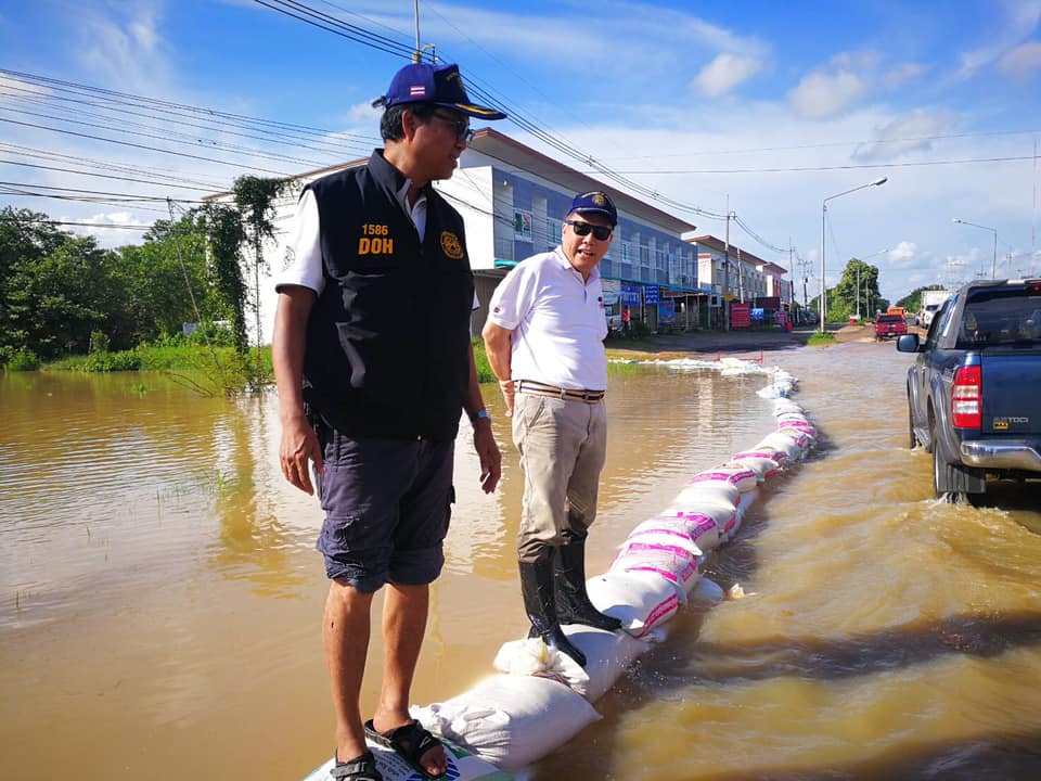 นายบัญชา สุทัยบำรุง ผู้อำนวยการสำนักงานทางหลวงที่ 8 ลงพื้นที่ตรวจติดตามสถานการณ์น้ำท่วม ในทางหลวงหมายเลข 2083 ตอน สะเดา - คำเขื่อนแก้ว กม.43+100 - 43+300