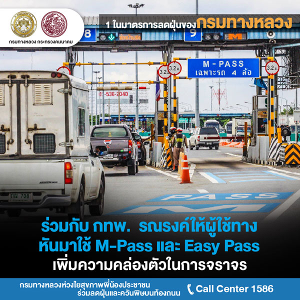 อธิบดีกรมทางหลวง กล่าวด้วยว่า ได้กำชับให้หน่วยงานในสังกัดดำเนินการแก้ไขปัญหาจราจรติดขัดบริเวณพี้นที่ก่อสร้าง และหน้าด่านเก็บค่าธรรมเนียมผ่านทาง โดยศึกษาและจัดทำแผนแก้ปัญหา ด่านเก็บค่าผ่านทางฯ ให้รถสามารถผ่านด่านฯ ได้โดยเร็ว ไม่หยุดชะงัก เพื่อแก้ไขปัญหาการก่อมลพิษอีกทางรวมทั้งร่วมมือกับการทางพิเศษแห่งประเทศไทยในการรณรงค์และกำหนดมาตรการจูงใจให้ผู้ใช้ทาง หันมาใช้ M-Pass และ Easy Pass โดยได้เพิ่มจุดรับสมัครและเติมเงิน M-Pass บนสายมอเตอร์เวย์ 5 จุด คือ ด่านฯ ทับช้าง 1, ด่านฯ ทับช้าง 2, Service Area ขาเข้า, Service Area ขาออก และด่านฯ โป่ง 3 ตลอดจนการลดค่าธรรมเนียมผ่านทางสำหรับดอนเมืองโทลล์เวย์ ด้วยการจำหน่ายคูปองส่วนลดร้อยละ 5 ต่อเล่ม เป็นระยะเวลา 6 เดือน ตั้งแต่วันนี้ถึง 21 มิ.ย. 2563 ซึ่งคูปองสามารถใช้ได้นาน 5 ปี