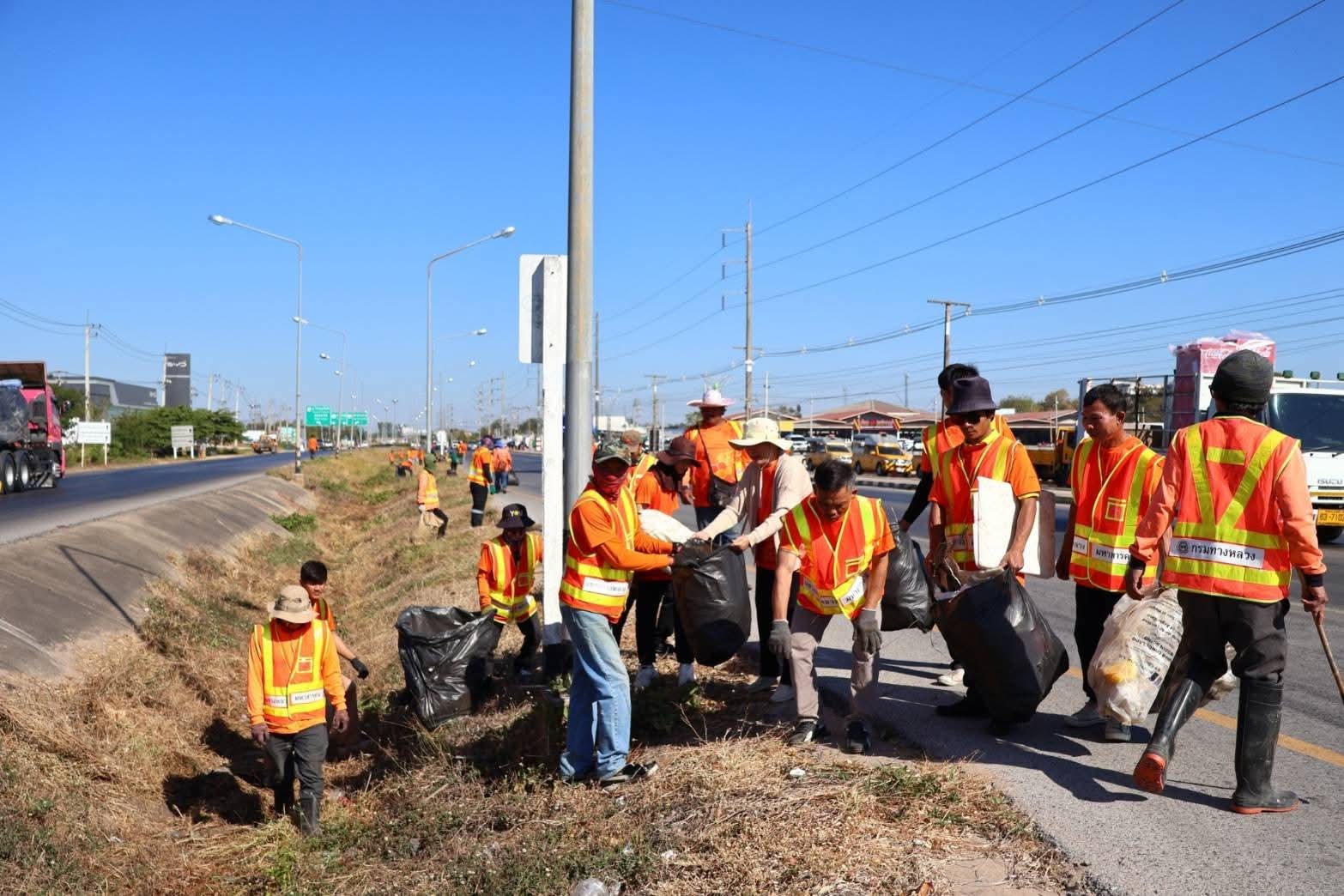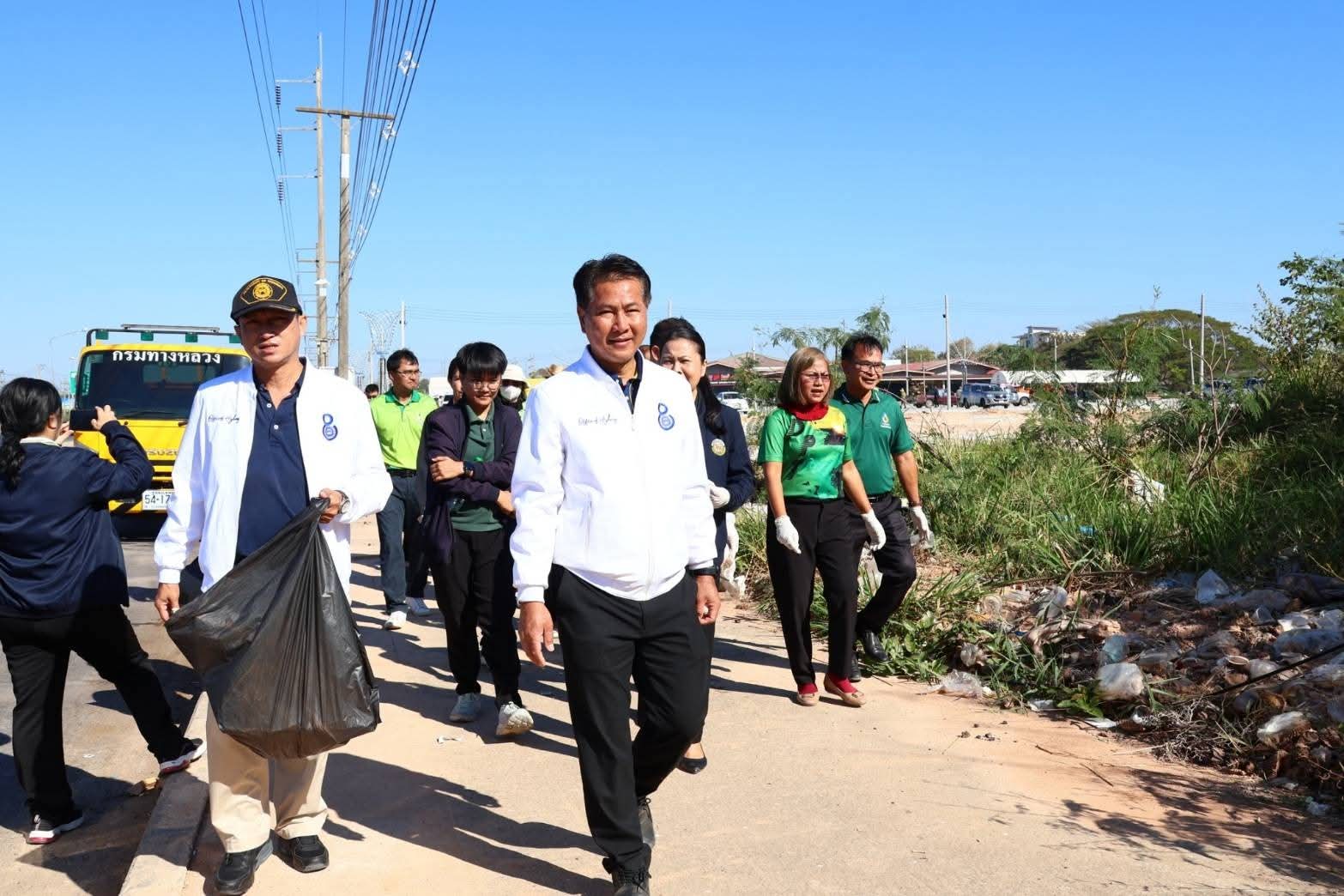นายภูวสิษฏ์ เชื่อมชัยตระกูล ผู้อำนวยการแขวงทางหลวงมหาสารคาม นำข้าราชการ พนักงาน และเจ้าหน้าที่แขวงทางหลวงมหาสารคาม ร่วมกิจกรรมอาสาสมัครท้องถิ่นรักษ์โลก รณรงค์ทำความสะอาดใหญ่ (Big Cleaning Day) ประจำปี 2568 โดยดำเนินการจัดเก็บขยะมูลฝอยในชุมชน ตัดแต่งกิ่งไม้บริเวณริมทางไม่ให้บดบังภูมิทัศน์ และป้ายจราจร ณ บริเวณสี่แยกตลาดเกษตร (บริเวณลาดจอดรถ)