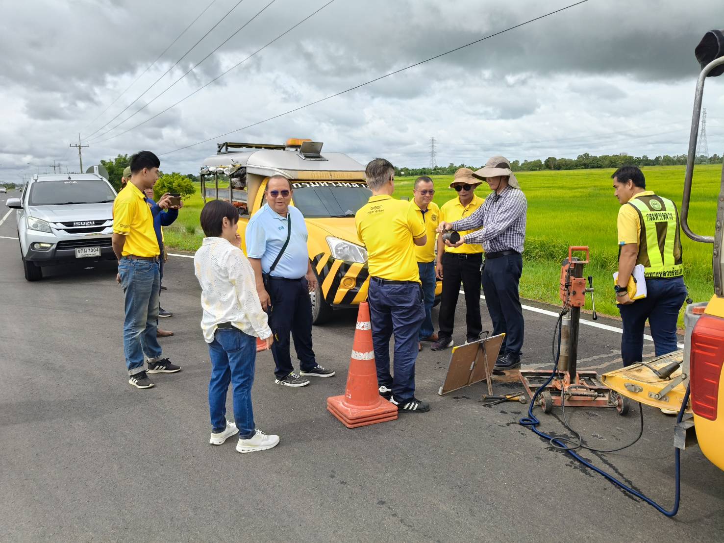 “ร่วมลงพื้นที่ตรวจสอบบริเวณน้ำท่วมขังผิวจราจร ทล.2418 ระหว่าง กม.22+700 - กม.23+200 (บริเวณบ้านหนองนกเขียน)”
