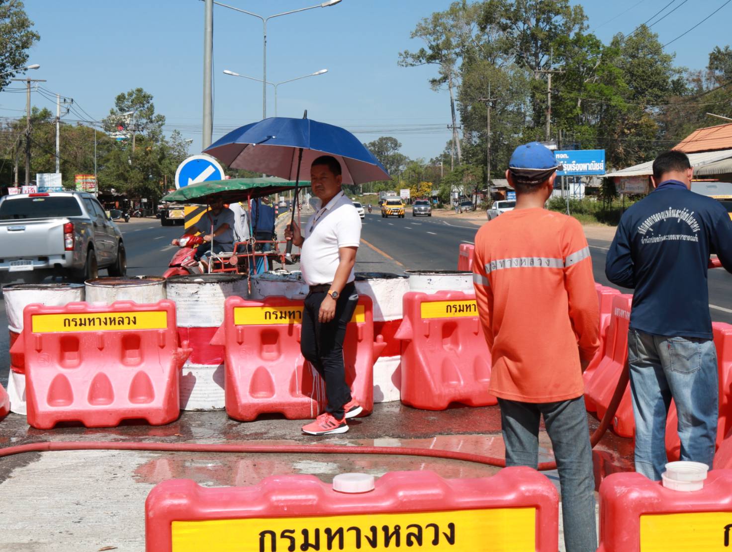 "ร่วมลงพื้นที่ตรวจสอบกายภาพทางหลวง เพื่อวางแผนในการปฏิบัติงานทดลองเปิดวงเวียนชั่วคราว เพื่อป้องกันปัญหาการจราจรทางแยก ทล.2046 ตอน บ้านงิ้ว – ลำน้ำยัง ที่กม.18+050 (สี่แยกบ้านโนนชัยศรี)"