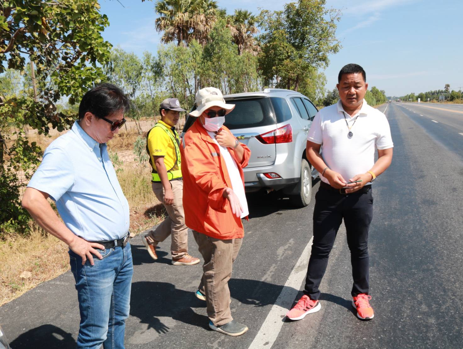 ลงพื้นที่ตรวจสอบปริมาณงาน เตรียมวางแผนปรับปรุงแก้ไข งานแก้ไขปัญหาจุดเสี่ยงที่มีการเกิดอุบัติเหตุบ่อยครั้ง ในทางหลวงหมายเลข 202 ตอน เกษตรวิสัย - สุวรรณภูมิ ระหว่าง กม. 202+500 - กม.203+100 (โค้งบ้านสองชั้น)