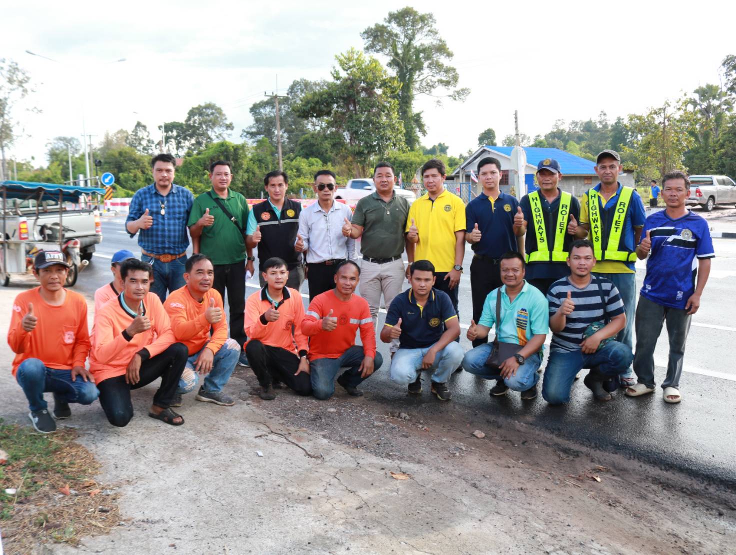 "ร่วมลงพื้นที่ตรวจสอบกายภาพทางหลวงเพื่อวางแผนการปฏิบัติงาน การปรับปรุงจุดเสี่ยงเพื่อทำวงเวียนชั่วคราว ทล.2043 ตอน ร้อยเอ็ด – ยางเฌอ ที่กม.9+850 (แยกบ้านหนองไผ่)"