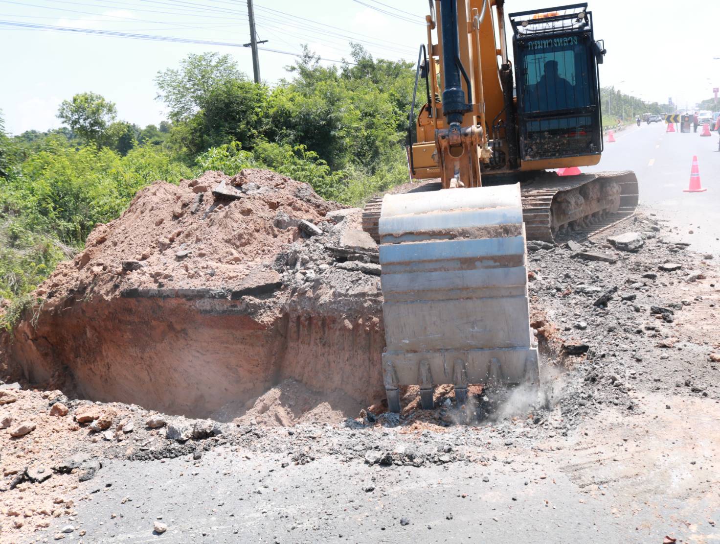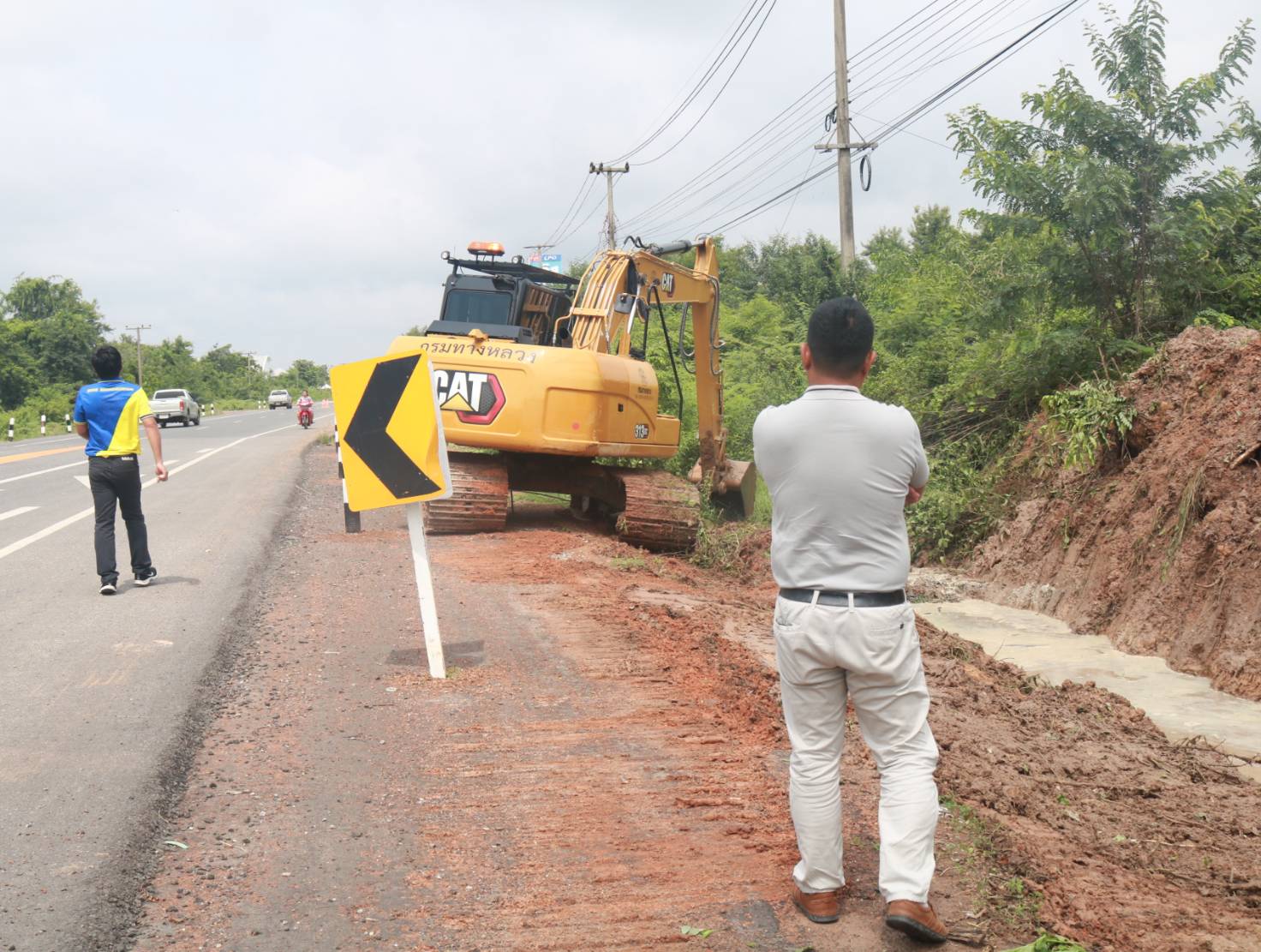 "คณะประเมินผลงานบำรุงทางฯ ร่วมลงพื้นที่สำรวจตรวจสอบ แนะนำแก้ไข งานภัยพิบัติคันทางสไลด์ เพื่อความสะดวกและปลอดภัย ของผู้ใช้ทาง ในทางหลวงหมายเลข 214 ตอน ลำชี - ร้อยเอ็ด ที่กม.29+900 (ด้านขวาทาง)"