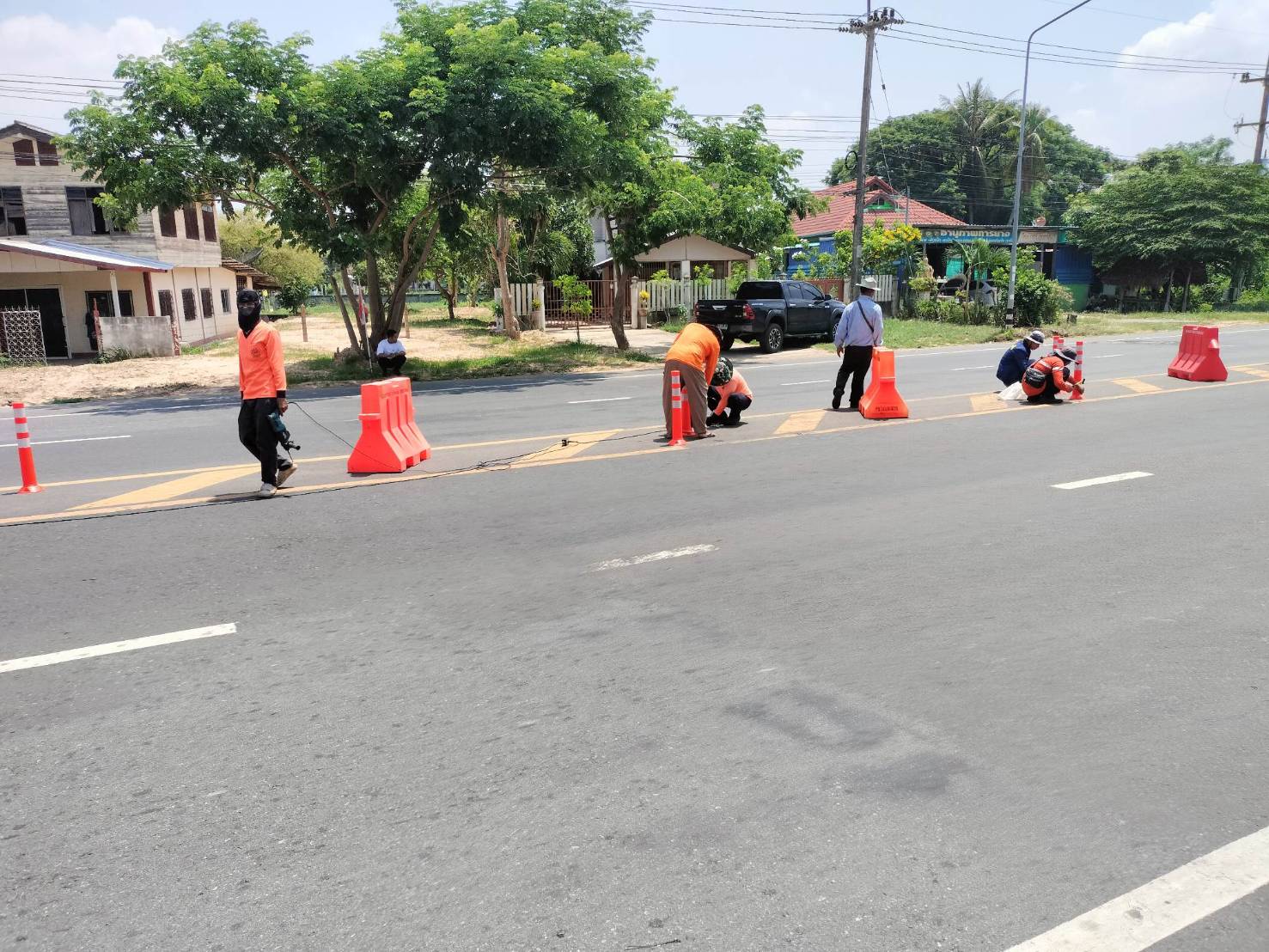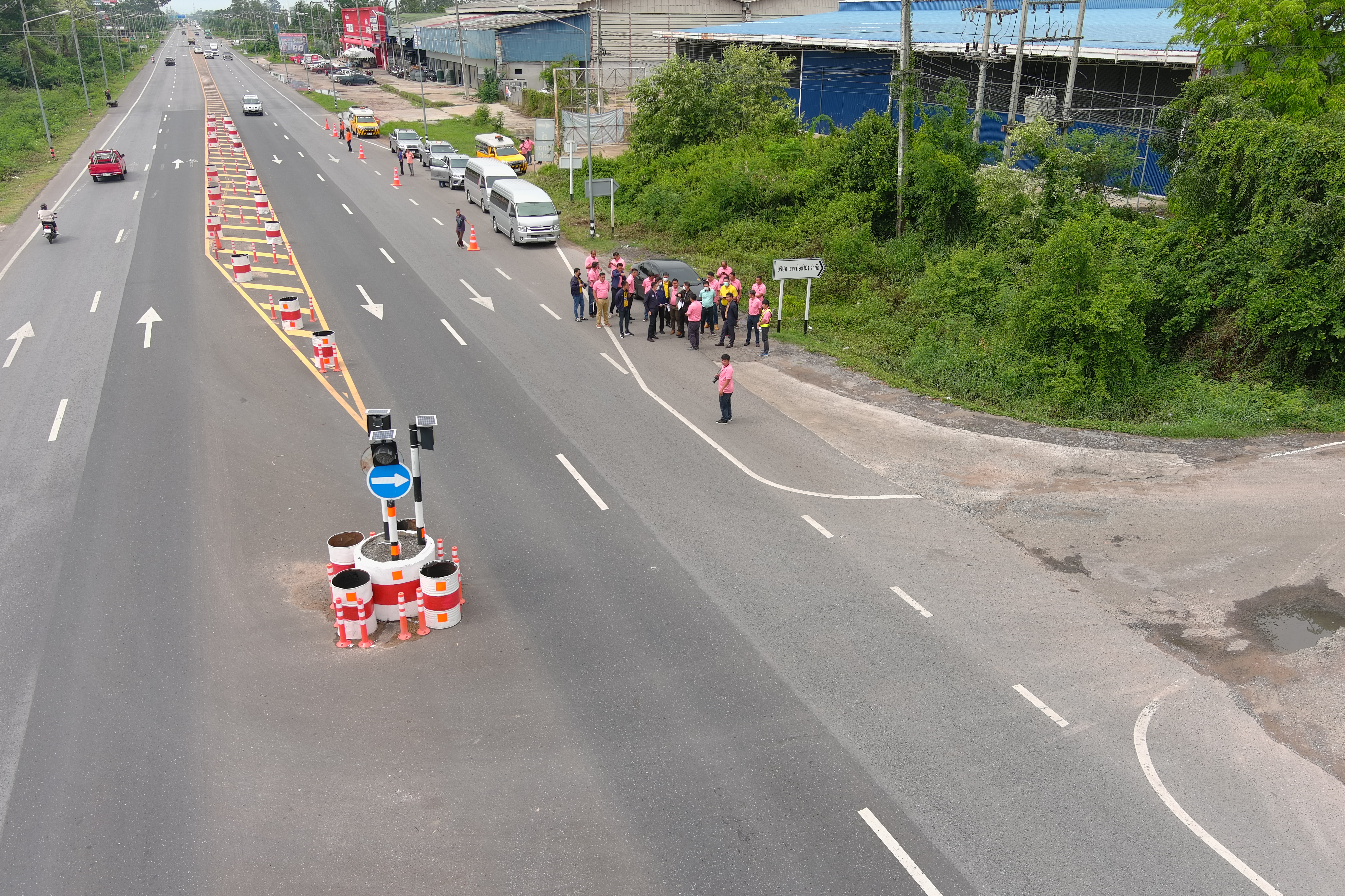 "คณะประเมินผลงานบำรุงทางฯ ร่วมลงพื้นที่สำรวจ ตรวจสอบ แนะนำ งานปรับปรุงจุดเสี่ยง โดยทำการวางอุปกรณ์อำนวยความปลอดภัย จัดระเบียบการเข้าใช้ทางแยก จัดทำวงเวียนชั่วคราว ทล.2044 ตอน ร้อยเอ็ด – หนองดง ที่กม.10+500 (สามแยกบ้านขัดเค้า)"