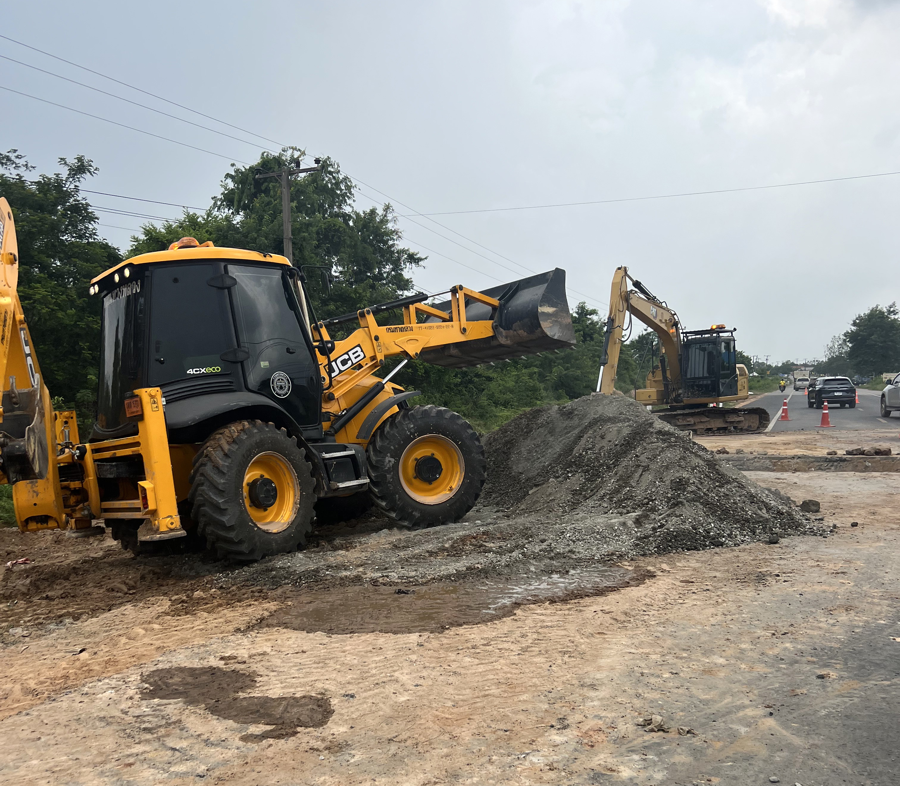 "ร่วมลงพื้นที่อำนวยการแนะนำ วิธีการปฏิบัติงานแก้ไขปัญหาน้ำท่วมทาง การวางท่อระบายน้ำ ทล.2044 ตอน หนองดง - โพนทอง ที่ กม.44+100 (หน้าคูโบต้าโพนทอง)"
