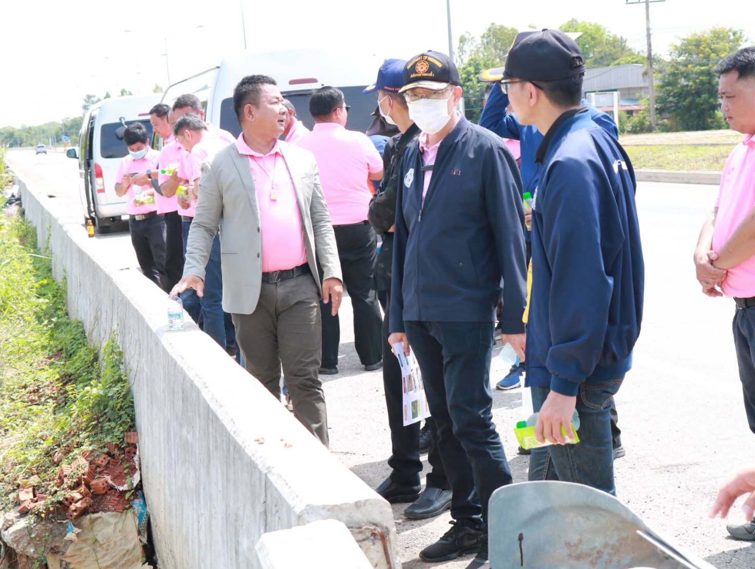 "ร่วมลงพื้นที่ตรวจสอบ แนะนำการปฏิบัติงาน แก้ไขปัญหาบริเวณที่จะเปิดจุดกลับรถ และตรวจสอบบริเวณที่จะก่อสร้างสะพานและตรวจสอบกายภาพทางหลวง เพื่อที่จะวางแผนวางท่อระบายน้ำ ตามสัญญา รอ.37/2566 ทล.2044 ตอน หนองดง - โพนทอง ระหว่าง กม.46+338 - 47+861"