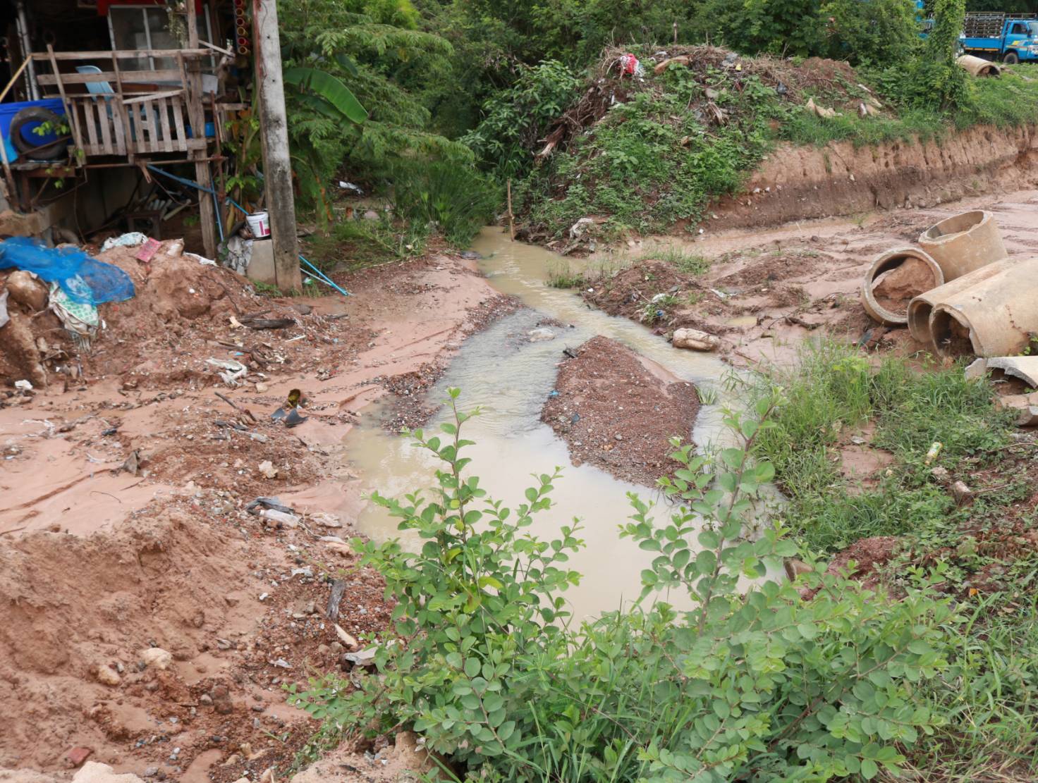 "ร่วมลงพื้นที่ตรวจสอบแนะนำการปฏิบัติงาน แก้ไขปัญหาน้ำท่วมทาง โดยการขุดลอกและการวางท่อระบายน้ำ เพื่อแก้ไขปัญหาน้ำท่วมขังในพื้นที่ ทล.2044 ตอน หนองดง - โพนทอง ที่ กม.44+100 (หน้าคูโบต้าโพนทอง)"