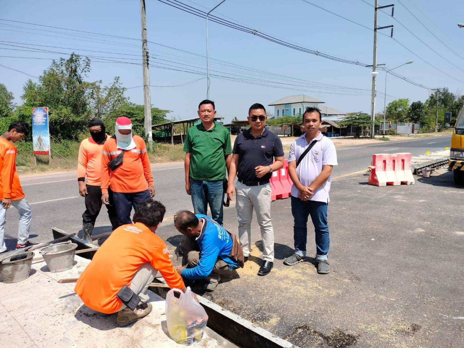 "ร่วมลงพื้นที่ออกสำรวจกายภาพทางหลวงเพื่อวิเคราะห์ปัญหาและหาสาเหตุของการเกิดอุบัติเหตุรถชนคอสะพาน ทล.23 ตอน ห้วยแอ่ง - ร้อยเอ็ด ที่กม.90+030"