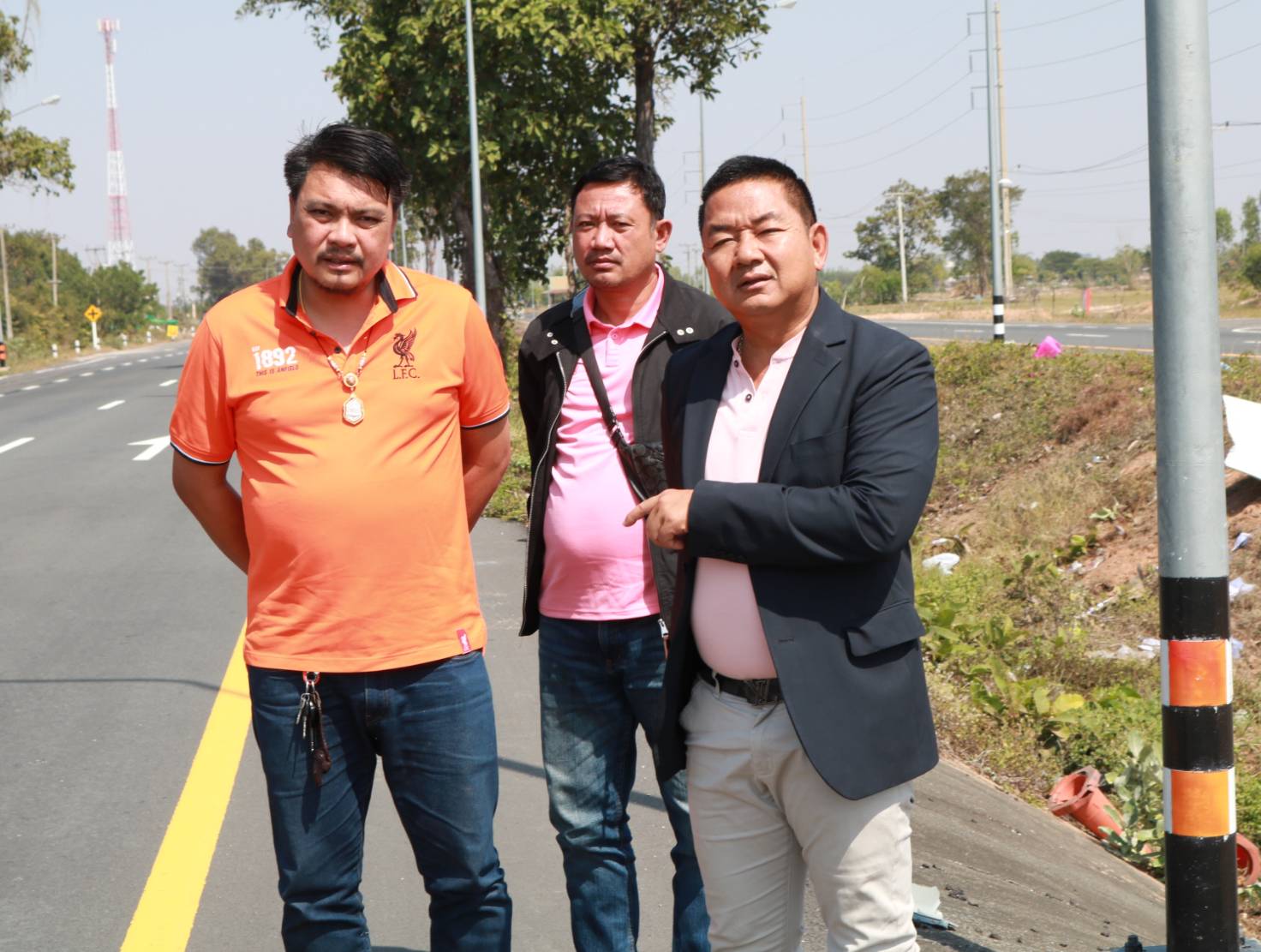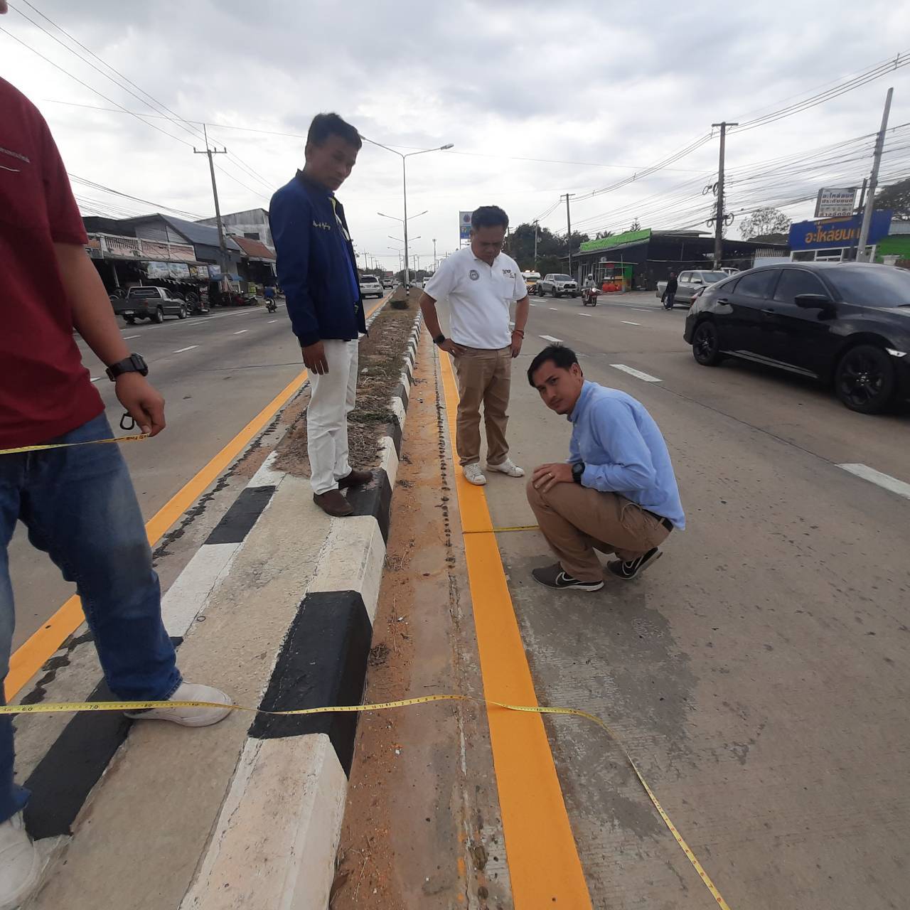 "ร่วมลงพื้นที่สำรวจติดตาม และแนะนำการปฏิบัติงาน ตามสัญญาเลขที่ รอ.16/2566 งานปรับปรุงการแบ่งทิศทางการจราจรเพื่อความปลอดภัย ทล.215 ตอน ร้อยเอ็ด - สุวรรณภูมิ ระหว่าง กม.25+800 - กม 27+450"