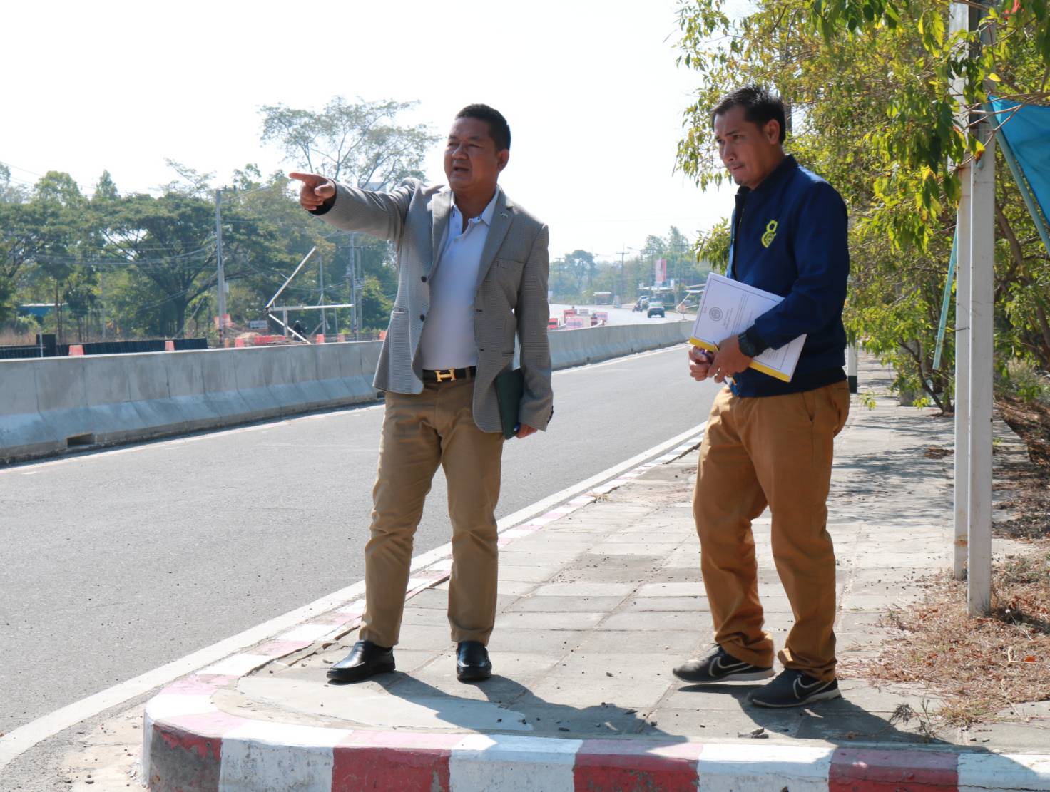 "ร่วมตรวจงานก่อสร้าง ตามสัญญาเลขที่ รอ.25/2566งานอำนวยความปลอดภัยเพื่อป้องกันและแก้ไขอุบัติเหตุ ในทางหลวงหมายเลข 215 ตอน ร้อยเอ็ด - สุวรรณภูมิ (ตอน 1) ระหว่าง กม.3+182 - กม.3+400"