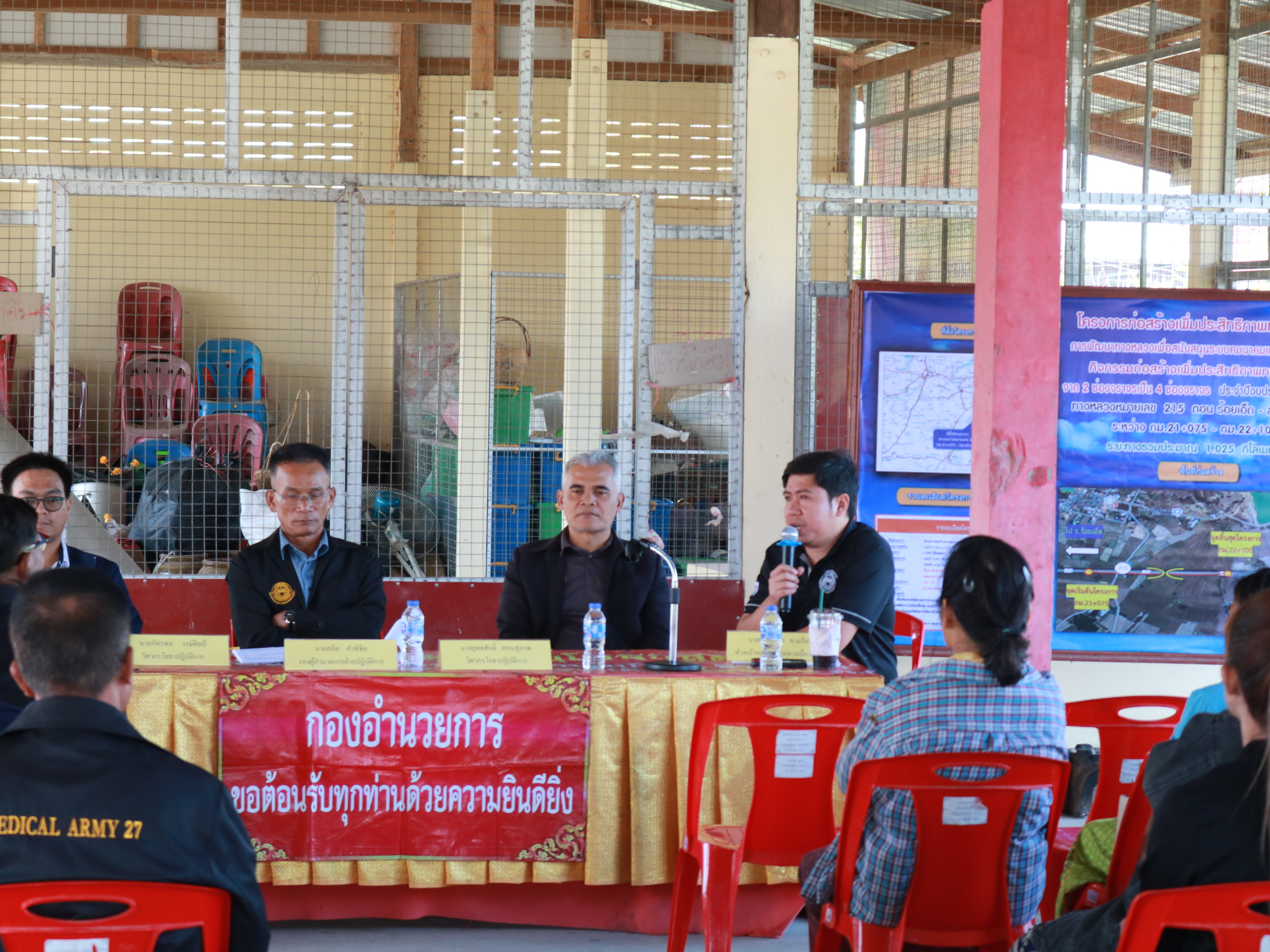 “ร่วมประชุมการมีส่วนร่วมของประชาชน เพื่อรับฟังความคิดเห็นของทุกภาคส่วน ในการดำเนินงานก่อสร้าง โครงการก่อสร้างโครงข่ายทางหลวงแผ่นดิน กิจกรรมก่อสร้างเพิ่มช่องจราจร ทางหลวงหมายเลข 215 ตอน ร้อยเอ็ด - สุวรรณภูมิ ระหว่าง กม.21+075 - กม.22+100”