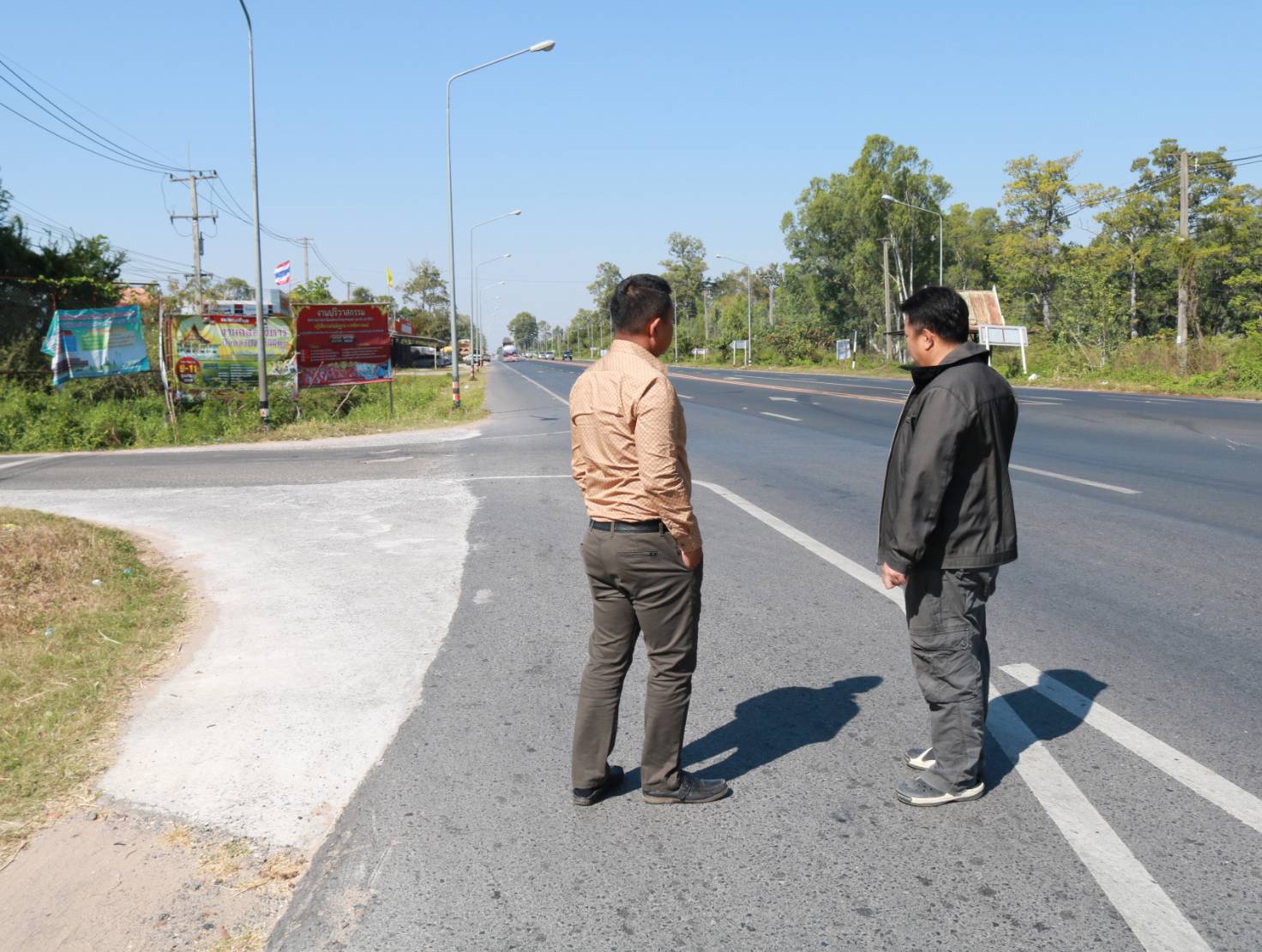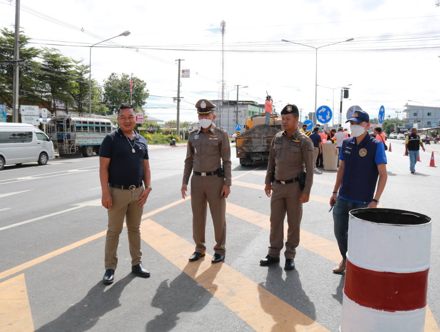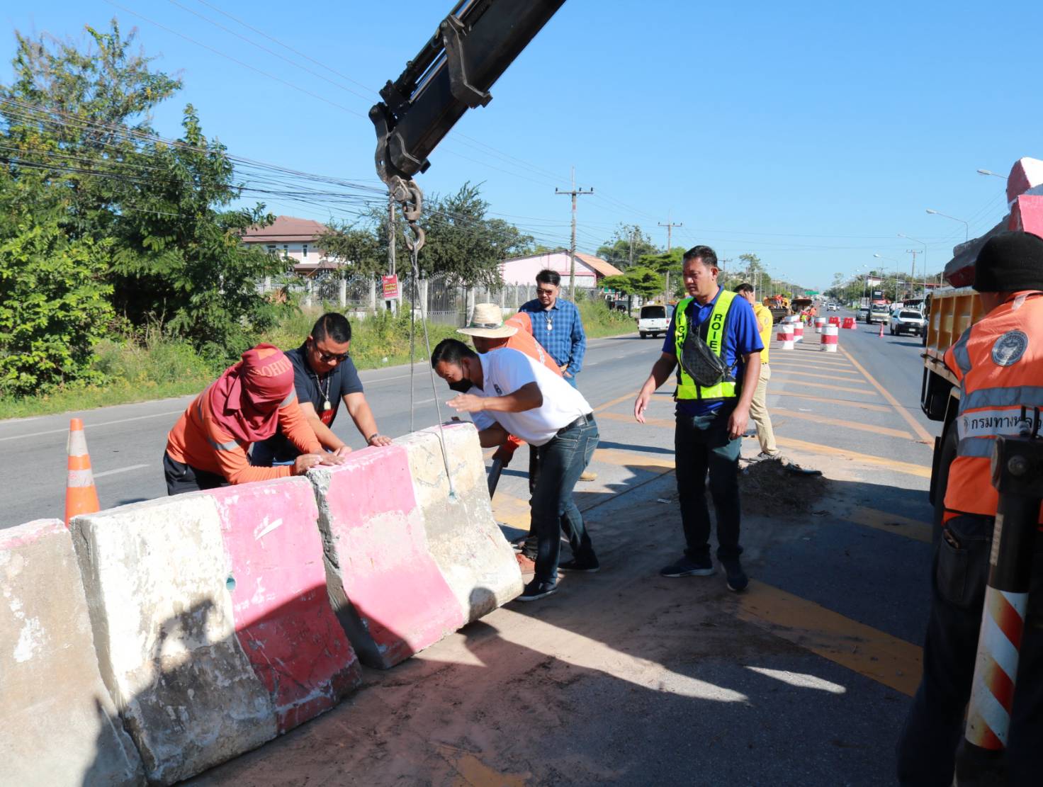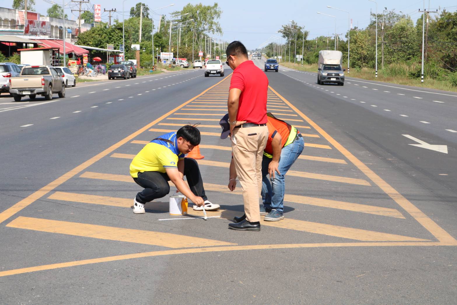 "ร่วมลงพื้นที่ให้คำแนะนำในการปฏิบัติงานตีเส้นจราจร ทล.2044 ตอน ร้อยเอ็ด - หนองดง ที่กม.7+500"