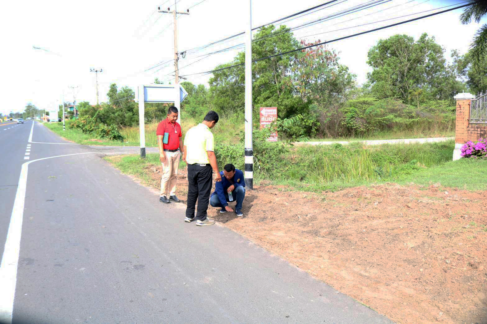 "สำรวจพื้นที่เพื่อจะดำเนินการปรับปรุงภูมิทัศน์ บริเวณหน้าสำนักงานแขวงทางหลวงร้อยเอ็ด ทล.2044 ที่กม.6+735"