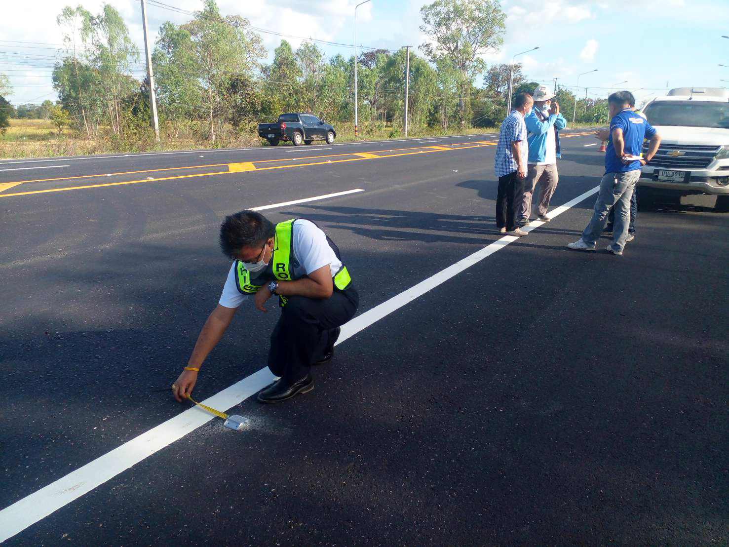 "ร่วมตรวจรับงานก่อสร้าง งานจ้างเหมาโครงการเพิ่มประสิทธิภาพและพัฒนาระบบจราจรเพื่อเพิ่มความปลอดภัยทางถนน จังหวัดร้อยเอ็ด ทล. 214 ตอน ลำชี - ร้อยเอ็ด ที่ กม.42+591 (บริเวณแยกบ้านบัว)"