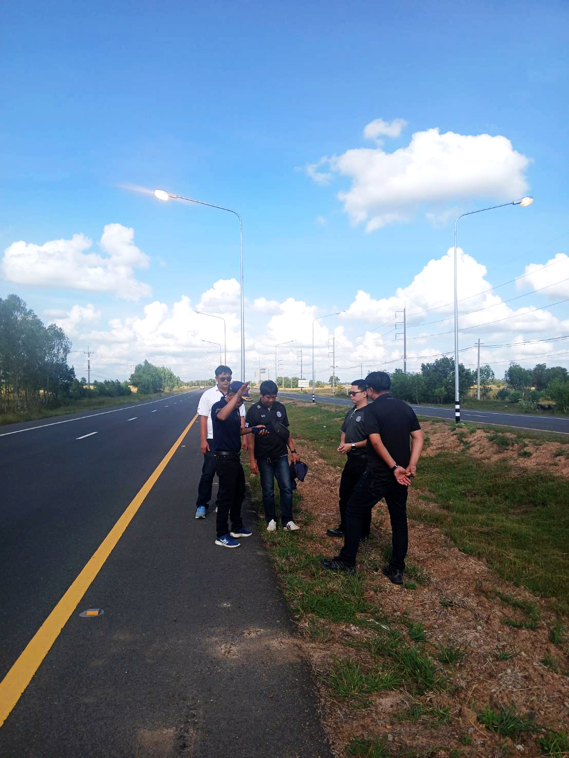 “ร่วมตรวจรับงานก่อสร้าง ตามสัญญา ที่ รอ.79/2568 งานจ้างก่อสร้างงบประมาณรายจ่ายประจำปี พ.ศ. 2568 งานติดตั้งไฟฟ้าแสงสว่าง งานอำนวยความปลอดภัยเพื่อป้องกันและแก้ไขอุบัติเหตุทางถนน ทล.202 ตอน ห้วยลำเตา - เกษตรวิสัย ตอน 2 ระหว่าง กม.170+525 - กม.173+775 (เป็นช่วงๆ)”