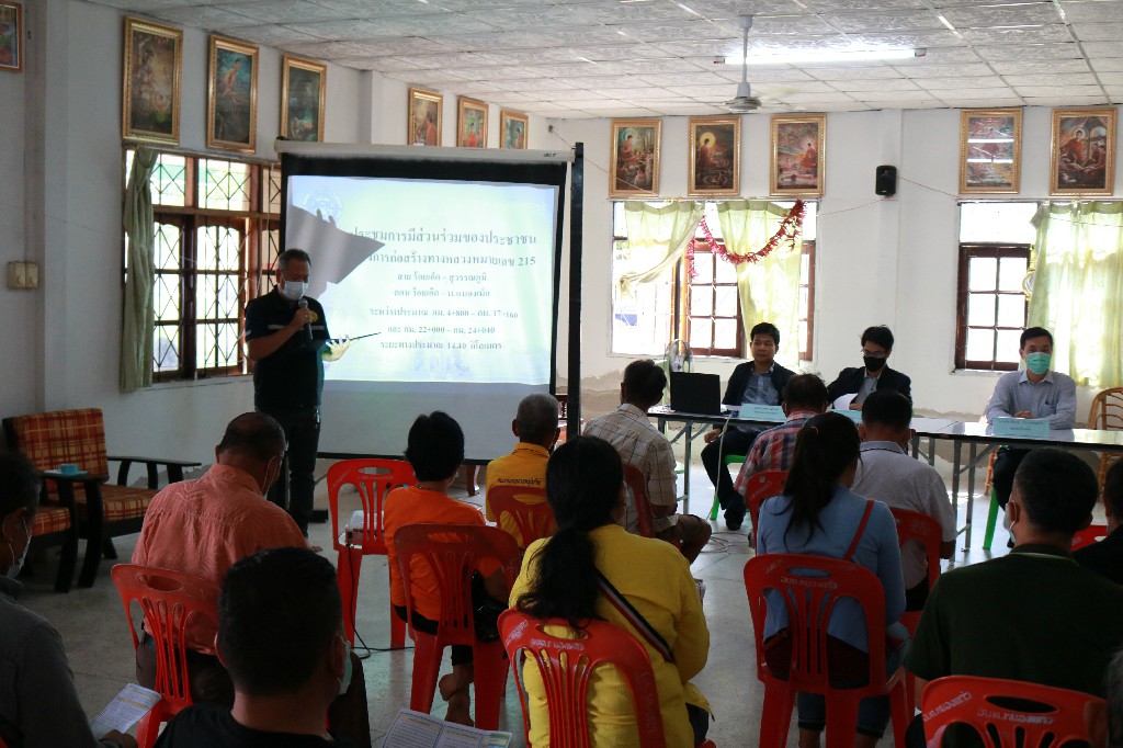 "ประชุมการมีส่วนร่วมของประชาชน เพื่อรับฟังความคิดเห็นของทุกภาคส่วน ในการดำเนินงานก่อสร้าง ทล.215 สาย ร้อยเอ็ด - สุวรรณภูมิ ตอน ร้อยเอ็ด - บ.หนองเม็ก"