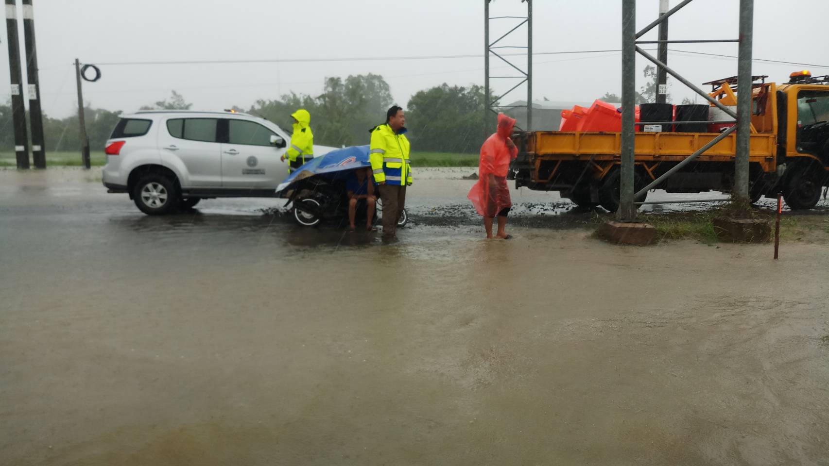 "ลงพื้นที่ตรวจสอบสถานการณ์น้ำท่วมสายทาง"