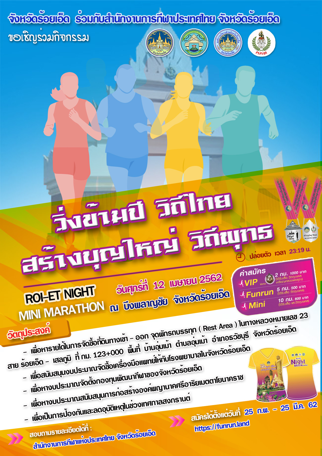 “แถลงข่าวงานวิ่งข้ามปี วิถีไทย สร้างบุญใหญ่ วิถีพุทธ” เพื่อหารายได้ในการจัดซื้อที่ดินทางเข้า - ออก จุดพักรถบรรทุก ( Rest Area) ในทางหลวงหมายเลข 23 สาย ร้อยเอ็ด – เสลภูมิ ที่กม.123+000 พื้นที่ บ้านอุ่มเม้า ตำบลอุ่มเม้า อำเภอธวัชบุรี จังหวัดร้อยเอ็ด