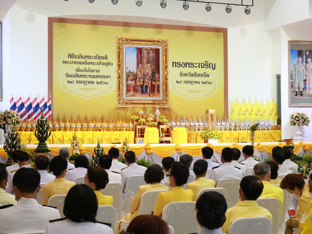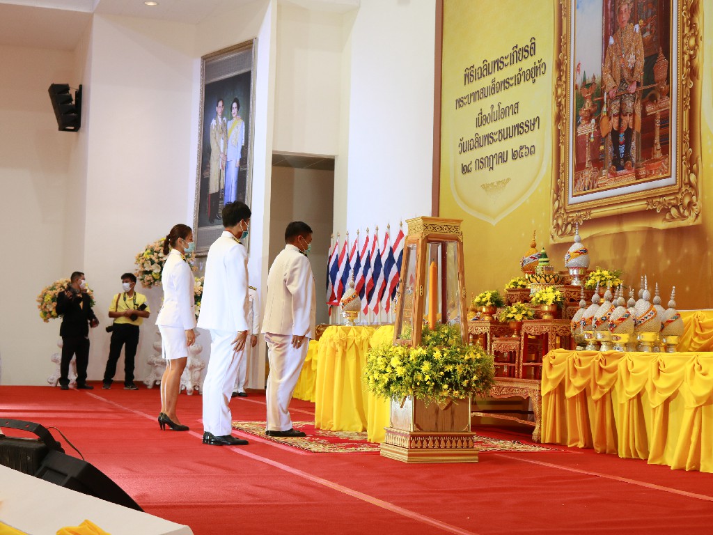 นายเกียรติพงษ์ เจียรนัยธนะกิจ ผู้อำนวยการแขวงทางหลวงร้อยเอ็ด มอบหมายให้เจ้าหน้าที่แขวงทางหลวงร้อยเอ็ด เข้าร่วมพิธีถวายเครื่องราชสักการะและวางพานพุ่ม และพิธีจุดเทียนถวายพระพรชัยมงคล เนื่องในโอกาสวันเฉลิมพระชนมพรรษา พระบาทสมเด็จพระปรเมนทรรามาธิบดีศรีสินทรมหาวชิราลงกรณ พระวชิรเกล้าเจ้าอยู่หัว 28 กรกฏาคม 2563 โดยมีนายวันชัย คงเกษม ผู้ว่าราชการจังหวัดร้อยเอ็ด เป็นประธานในพิธี ณ ห้องประชุมชั้น 2 หอประชุมประจำจังหวัดร้อยเอ็ด