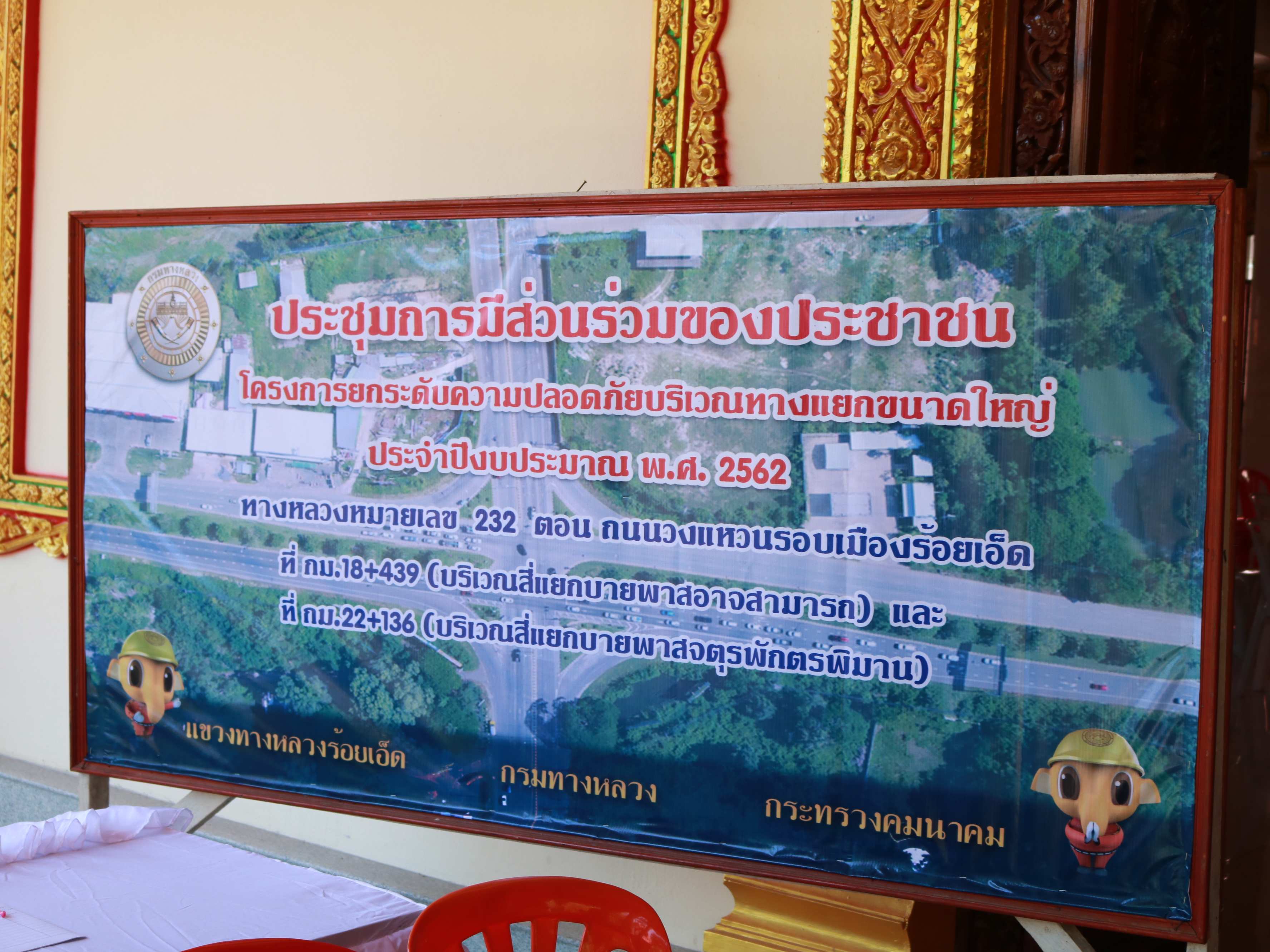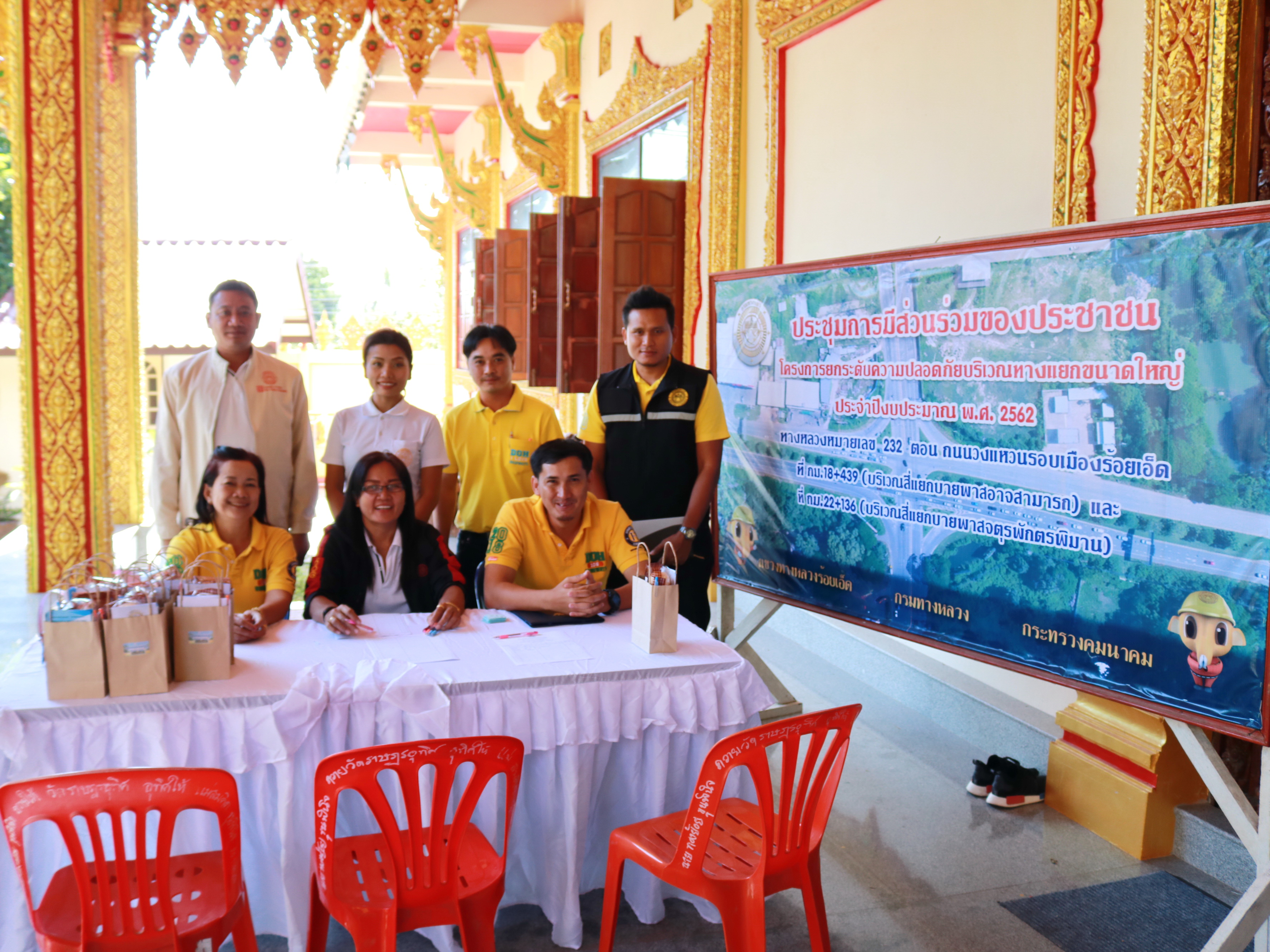 การมีส่วนร่วมของประชาชน "โครงการยกระดับความปลอดภัยบริเวณทางแยกขนาดใหญ่ ประจำปีงบประมาณ พ.ศ. 2562 ทล.232 ตอน ถนนวงแหวนรอบเมืองร้อยเอ็ด