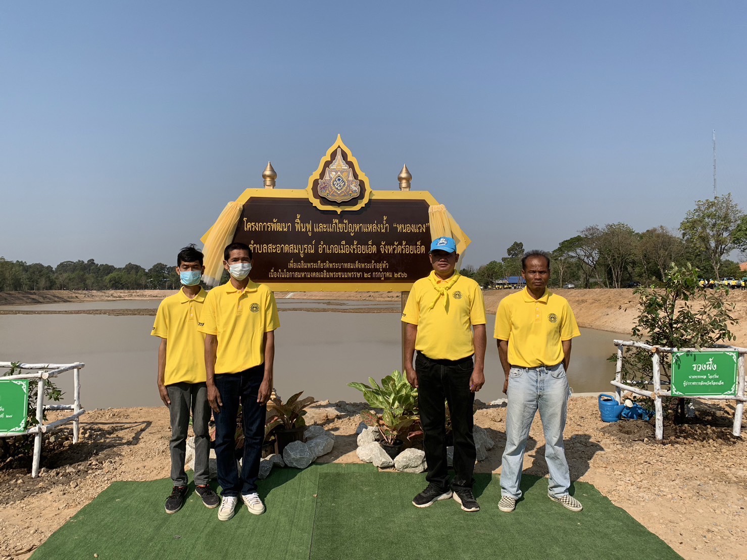 นายมงคล แสนวงษา ผู้อำนวยการแขวงทางหลวงร้อยเอ็ด มอบหมายให้นายสุพรรณ ปากวิเศษ หัวหน้าหมวดทางหลวงจตุรพักตรพิมาน พร้อมด้วยเจ้าหน้าที่หมวดทางหลวงจตุรพักตรพิมาน เข้าร่วมกิจกรรมจิตอาสาปลูกต้นไม้เพื่อพัฒนา ฟื้นฟู และแก้ไขปัญหาเเหล่งน้ำ"หนองแวง" เพื่อเฉลิมพระเกียรติพระบาทสมเด็จพระเจ้าอยู่หัว เนื่องในโอกาสมหามงคลเฉลิมพระชนมพรรษา 28 กรกฏาคม 2566 และเนื่องในวันที่ระลึกพระบาทสมเด็จพระพุทธเลิศหล้านภาลัย 24 กุมภาพันธ์ 2566 ณ หนองแวง บ้านแมต หมู่ที่ 4 ตำบลสะอาดสมบูรณ์ อำเภอเมืองร้อยเอ็ด จังหวัดร้อยเอ็ด