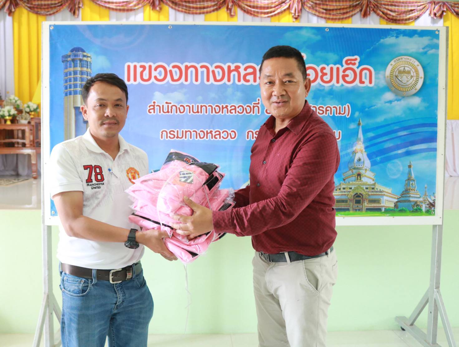 นายมงคล แสนวงษา ผู้อำนวยการแขวงทางหลวงร้อยเอ็ด มอบเสื้อลำลองสำหรับปฏิบัติงานแก่หัวหน้าหน่วยและทุกหมวดทางหลวง เพื่อสร้างขวัญและกำลังใจ แก่เจ้าหน้าที่ผู้ปฏิบัติงานทุกคน ณ ห้องประชุมจุลละโพธิ แขวงทางหลวงร้อยเอ็ด