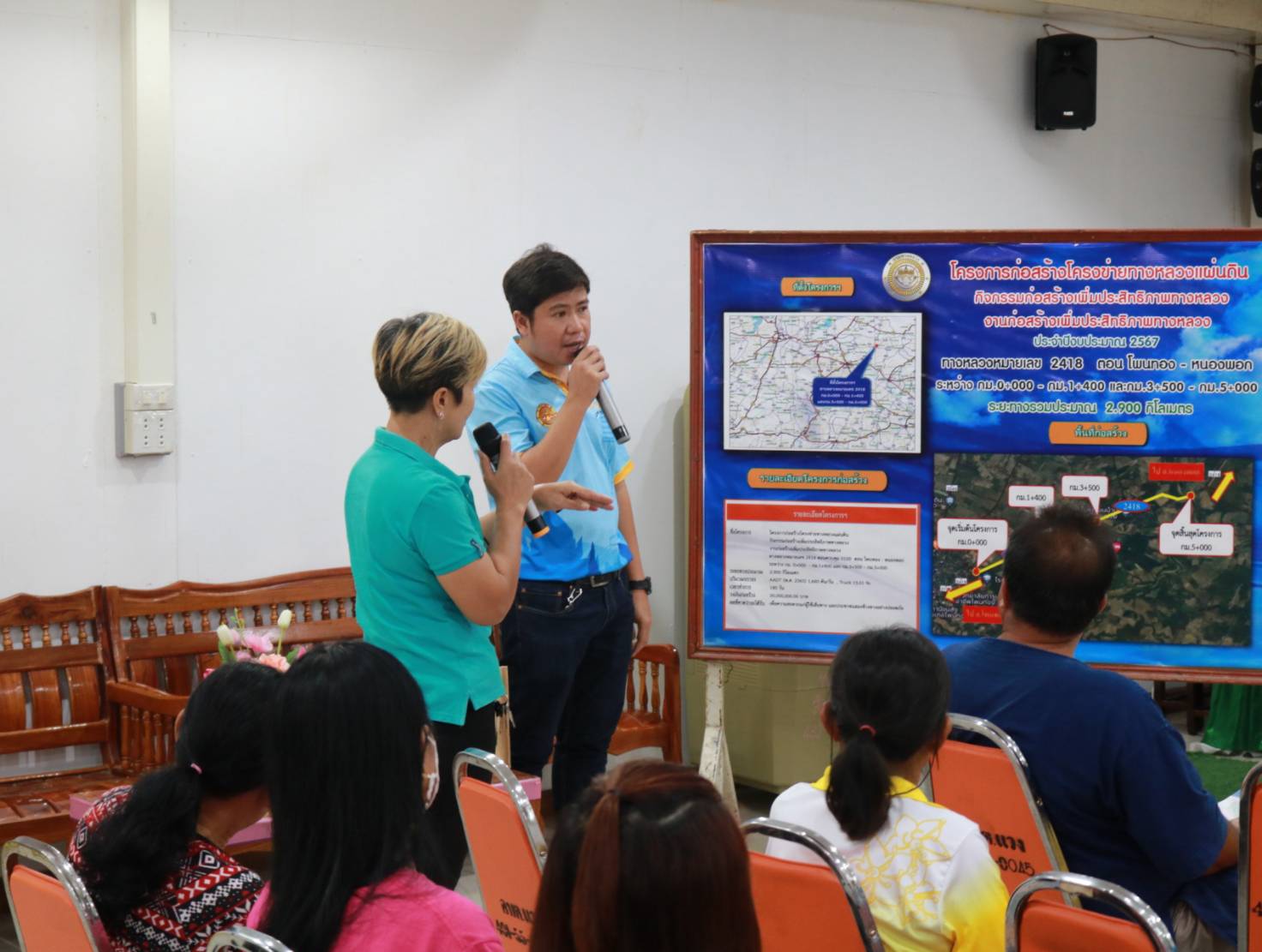 "ร่วมประชุมการมีส่วนร่วมของประชาชน เพื่อรับฟังความคิดเห็นของทุกภาคส่วน ในการดำเนินงานก่อสร้าง โครงการเพิ่มประสิทธิภาพทางหลวง ในทางหลวงหมายเลข 2418 ตอน โพนทอง - หนองพอก ระหว่าง กม.0+000 - กม.1+400 และ ระหว่าง กม.3+500 กม.5+000"