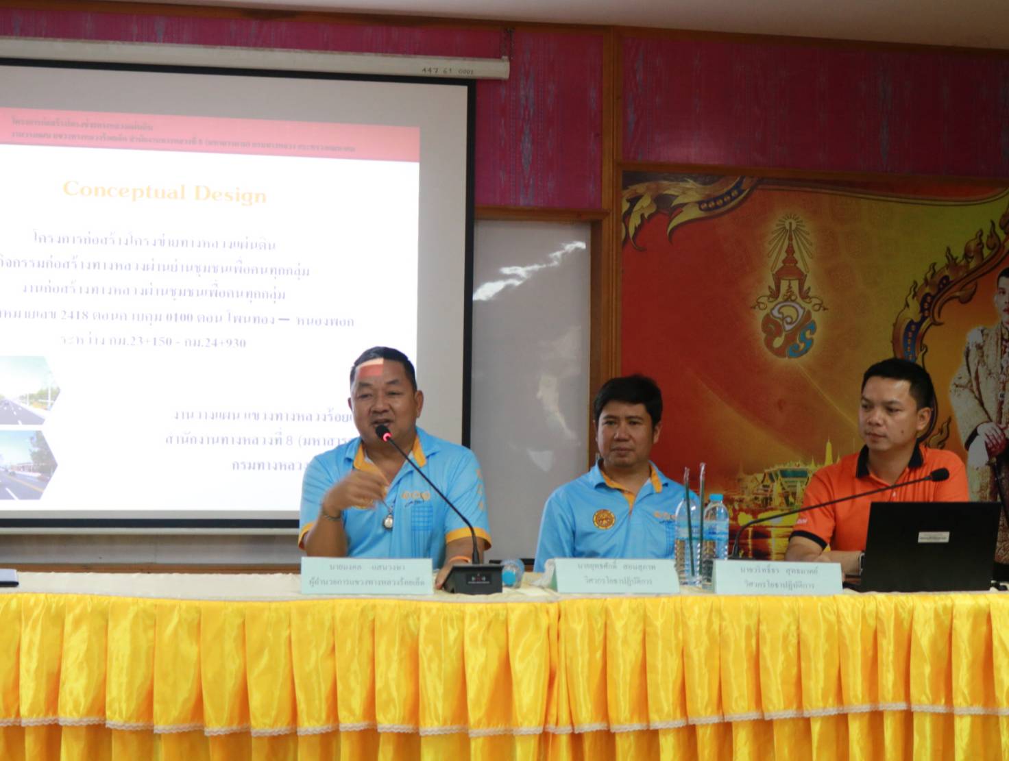นายมงคล แสนวงษา ผู้อำนวยการแขวงทางหลวงร้อยเอ็ด พร้อมด้วยนายยุทธศักดิ์ สอนสุภาพ วิศวกรโยธาปฏิบัติการ ,นายวริทธิ์ธร สุทธมาตย์ วิศวกรโยธาปฏิบัติการ งานวิศวกรรม แขวงทางหลวงร้อยเอ็ด และเจ้าหน้าที่แขวงทางหลวงร้อยเอ็ด ได้ร่วมประชุมการมีส่วนร่วมของประชาชน เพื่อรับฟังความคิดเห็นของทุกภาคส่วน ในการดำเนินงานก่อสร้าง โครงการก่อสร้างเพิ่มประสิทธิภาพทางหลวง ในทางหลวงหมายเลข 2418 ตอน โพนทอง - หนองพอก ระหว่าง กม.23+150 - กม.24+930 โดยมีนายพิพิศ เวียงอินทร์ นายกเทศมนตรีตำบลเมยวดี เป็นประธานในการประชุม ณ ห้องประชุมเทศบาลตำบลเมยวดี ตำบลเมยวดี อำเภอเมยวดี จังหวัดร้อยเอ็ด