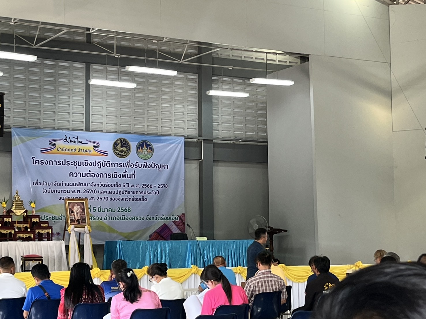 “เข้าร่วมประชุมเชิงปฏิบัติการเพื่อรับฟังปัญหาความต้องการเชิงพื้นที่ เพื่อนำมาจัดทำแผนพัฒนาจังหวัดร้อยเอ็ด 5 ปี พ.ศ. 2566 – 2570 (ฉบับทบทวน พ.ศ. 2570) และแผนปฏิบัติราชการประจำปีงบประมาณ พ.ศ. 2570 ของจังหวัดร้อยเอ็ด อำเภอเมืองสรวง”