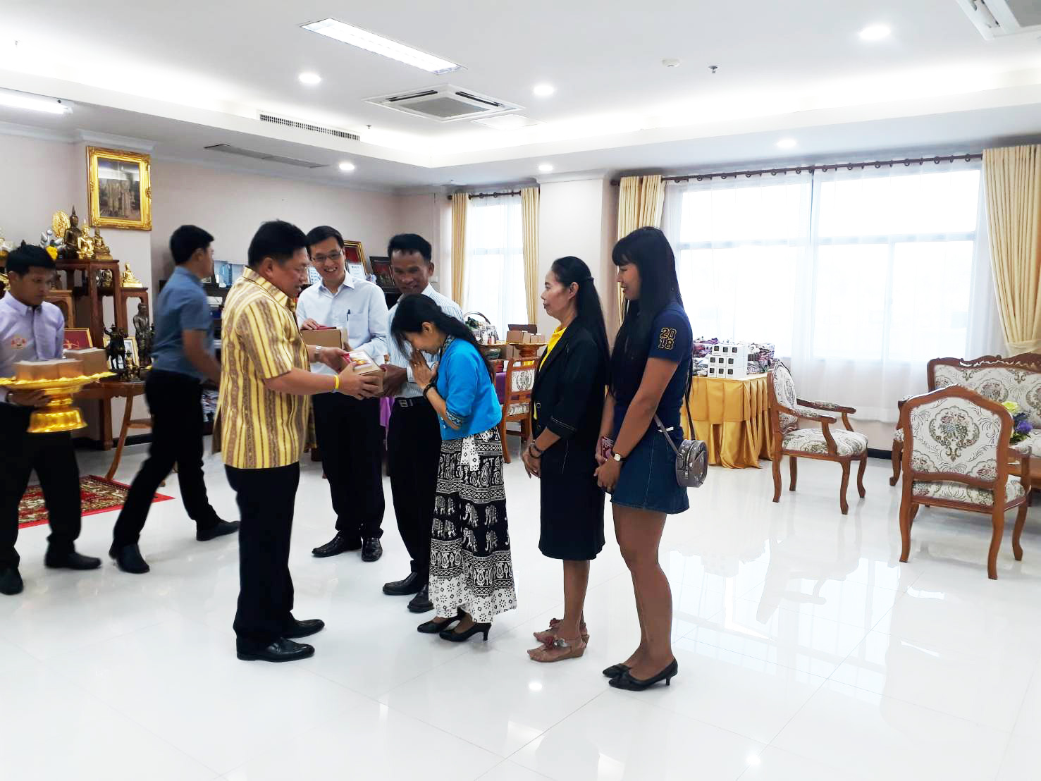 นายเกียรติพงษ์ เจียรนัยธนะกิจ ผู้อำนวยการแขวงทางหลวงร้อยเอ็ด พร้อมด้วยนายสถิต คำพิชิต รองผู้อำนวยการแขวงทางหลวงร้อยเอ็ด ฝ่ายปฏิบัติการ ,นางสาวรฐา นุฤทธิ์มนตรี รองผู้อำนวยการแขวงทางหลวงร้อยเอ็ด ฝ่ายบริหาร และคณะเจ้าหน้าที่แขวงทางหลวงร้อยเอ็ด เข้าพบและอวยพรปีใหม่ 2563 แด่ นายวันชัย คงเกษม ผู้ว่าราชการจังหวัดร้อยเอ็ด และนายทวี จงประเสริฐ รองผู้ว่าราชการจังหวัดร้อยเอ็ด ณ ศาลากลางจังหวัดร้อยเอ็ด