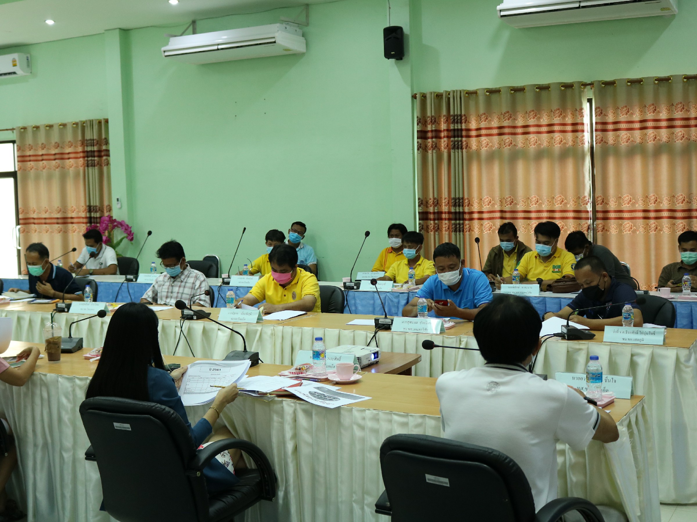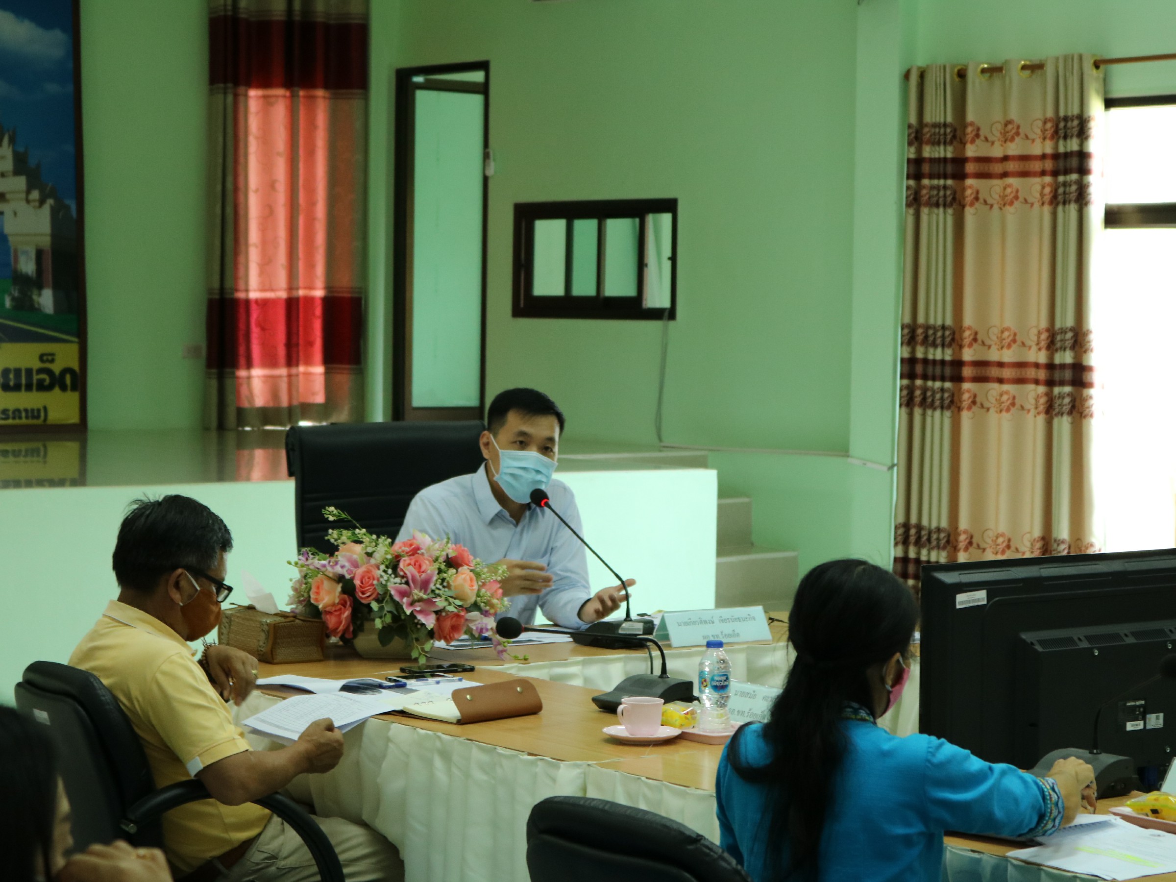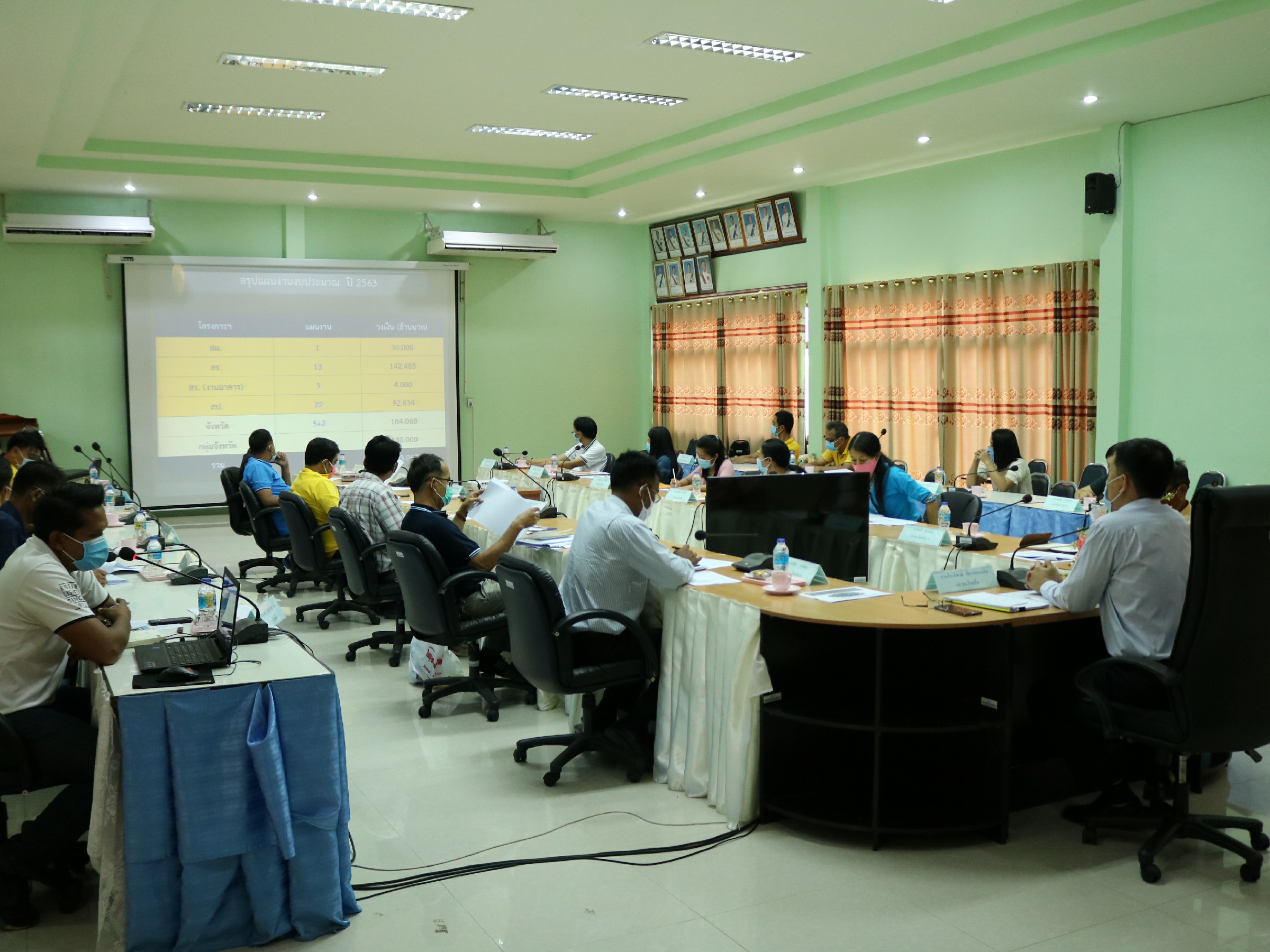 นายเกียรติพงษ์ เจียรนัยธนะกิจ ผู้อำนวยการแขวงทางหลวงร้อยเอ็ด พร้อมคณะเจ้าหน้าที่ ทุกส่วน/ฝ่าย ร่วมประชุมประจำเดือน เพื่อสรุปผลการดำเนินงาน และเร่งรัดผลการเบิกจ่ายประจำปีงบประมาณ พ.ศ.2563 ณ ห้องประชุมจุลละโพธิ แขวงทางหลวงร้อยเอ็ด โดยมีการคัดกรองตรวจวัดอุณหภูมิเจ้าหน้าที่เข้าร่วมประชุม และเว้นระยะห่างในการประชุม เพื่อเป็นการป้องกันการแพร่ระบาดของเชื้อไวรัสโคโรนา COVID – 19 ตามมาตรการป้องกันการแพร่ระบาดอย่างเข้มงวด