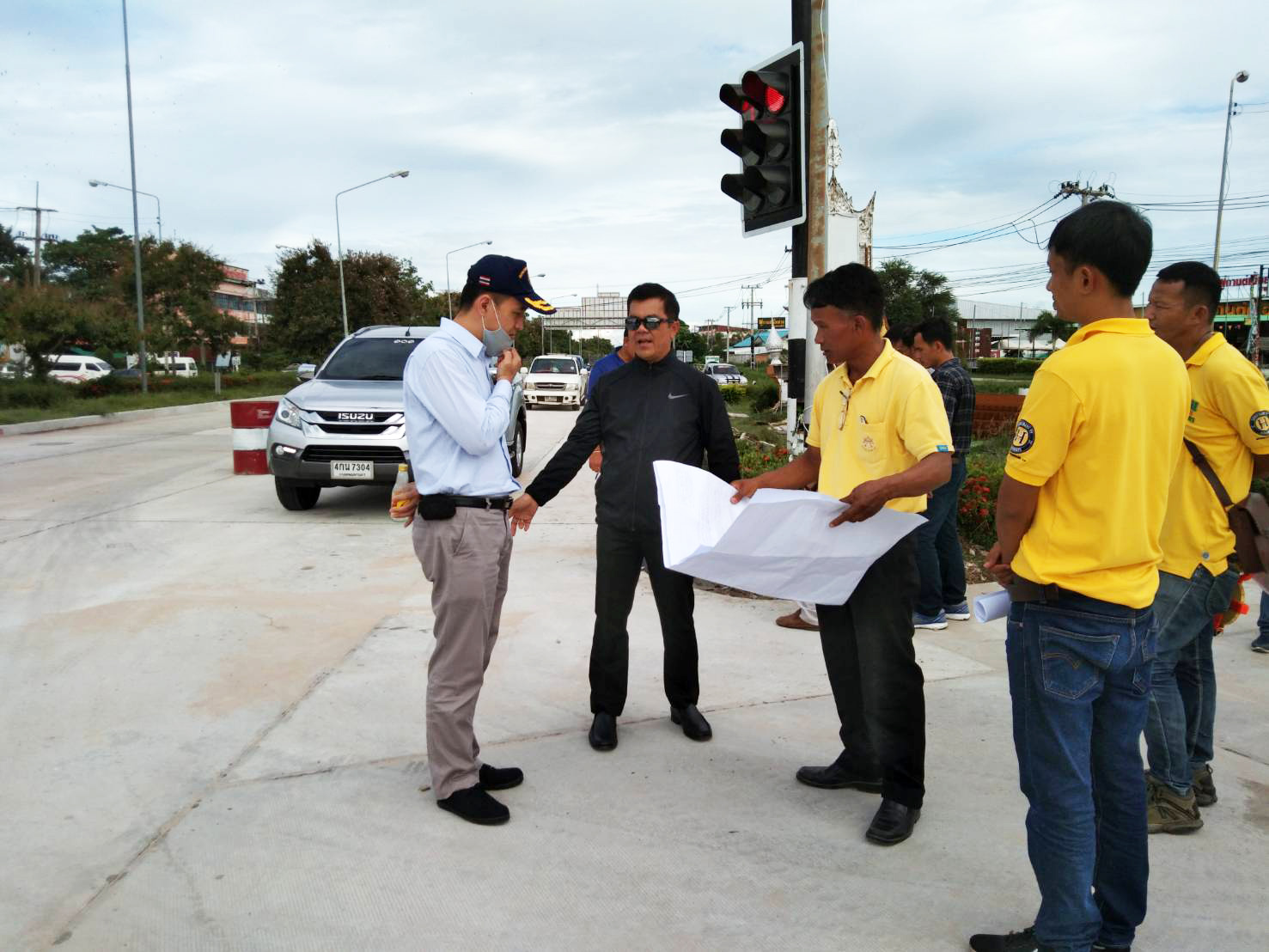 นายปรัชญา นารถน้ำพอง รองผู้อำนวยการสำนักงานทางหลวงที่ 8 (มหาสารคาม) ตำแหน่งที่ 2 ประธานตรวจการจ้าง ,นายเกียรติพงษ์ เจียรนัยธนะกิจ ผู้อำนวยการแขวงทางหลวงร้อยเอ็ด พร้อมด้วยคณะกรรมการฯ ร่วมตรวจงานก่อสร้าง โครงการยกระดับความปลอดภัยบริเวณทางแยกขนาดใหญ่ (สี่แยกบายพาสสุวรรณภูมิ) ในทางหลวงหมายเลข 232 ตอน ถนนวงแหวนรอบเมืองร้อยเอ็ด ที่ กม.20+829โดยมี บริษัท ปรมินทร์ก่อสร้าง มหาสารคาม จำกัดเป็นผู้รับจ้าง