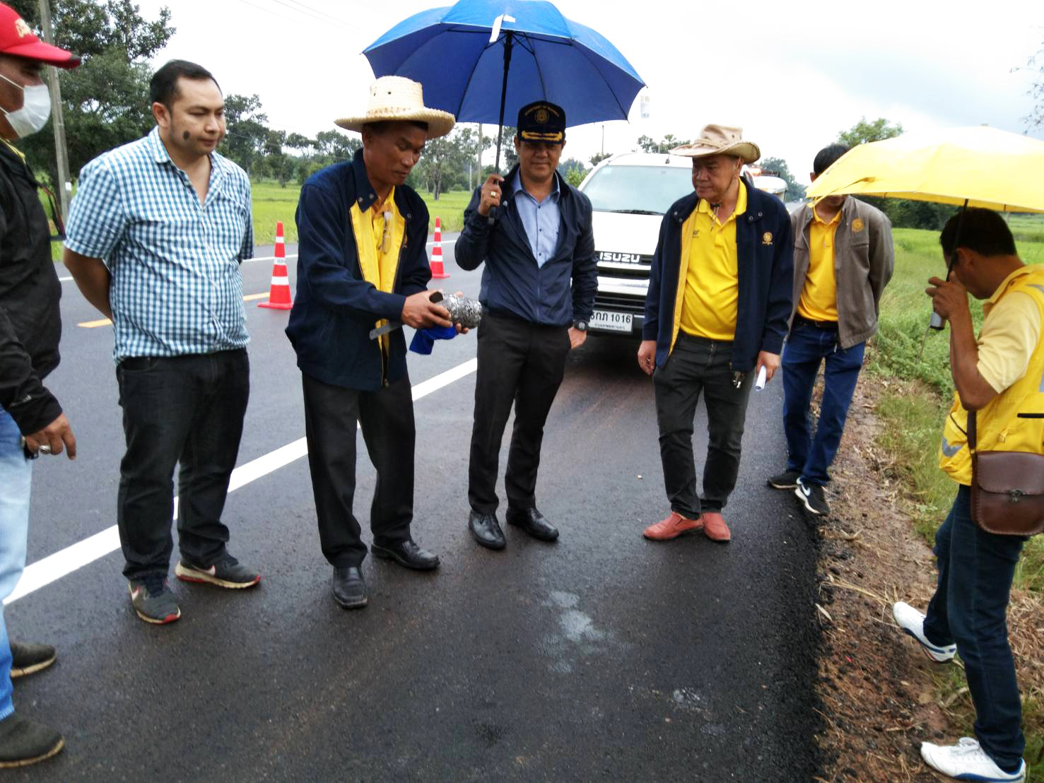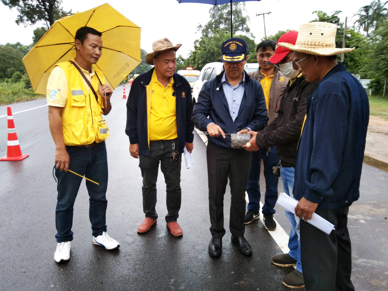 ตรวจรับงานก่อสร้าง งานจ้างเหมาเสริมผิวแอสฟัลต์ ในทางหลวงหมายเลข 215