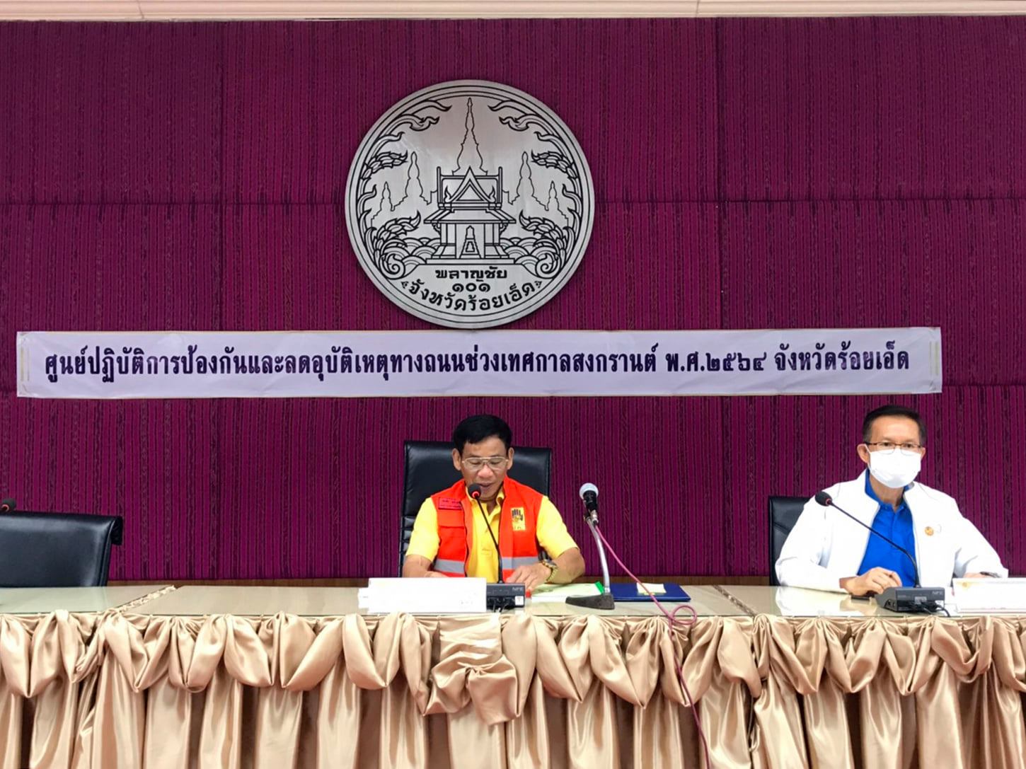 นายสถิต คำพิชิต รองผู้อำนวยการแขวงทางหลวงร้อยเอ็ด ฝ่ายปฏิบัติการ พร้อมด้วยหัวหน้าส่วนราชการในจังหวัดร้อยเอ็ด เข้าร่วมแถลงข่าวสรุปผลการดำเนินการป้องกันและลดอุบัติเหตุทางถนนช่วงเทศกาลสงกรานต์ พ.ศ. 2564 โดยมีนายสมชัย คล้ายทับทิม รองผู้ว่าราชการจังหวัดร้อยเอ็ด เป็นประธานในการแถลงข่าวฯ ณ ศูนย์ปฏิบัติการป้องกันและลดอุบัติเหตุทางถนนช่วงเทศกาลสงกรานต์ พ.ศ. 2564 จังหวัดร้อยเอ็ด ห้องประชุมพระมหาเจดีย์ชัยมงคล ชั้น 5 ศาลากลางจังหวัดร้อยเอ็ด