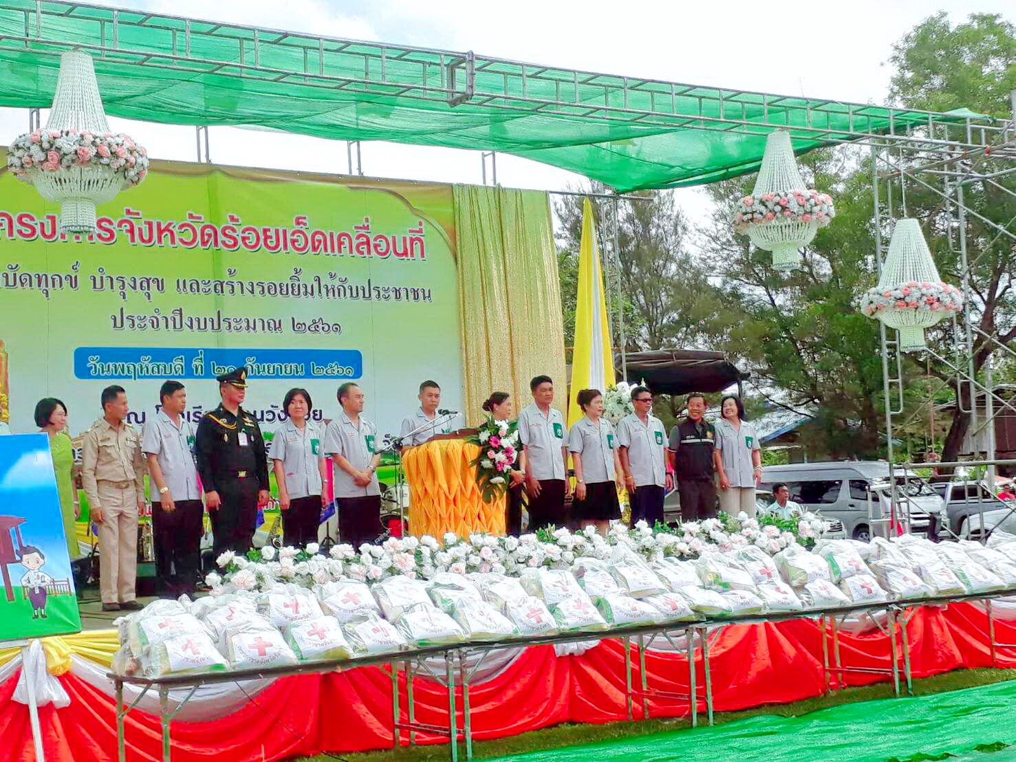หมวดทางหลวงโพนทอง แขวงทางหลวงร้อยเอ็ด เข้าร่วมโครงการ “จังหวัดร้อยเอ็ดเคลื่อนที่ บำบัดทุกข์ บำรุงสุข และสร้างรอยยิ้ม ให้ประชาชน ประจำปีงบประมาณ พ.ศ. 2561 ครั้งที่ 14” ณ โรงเรียนบ้านวังม่วย ต.วังสามัคคี อ.โพนทอง จ.ร้อยเอ็ด โดยมีนายเลิศบุศย์ กองทอง รองผู้ว่าราชการจังหวัดร้อยเอ็ด เป็นประธานเปิดงานโครงการดังกล่าว