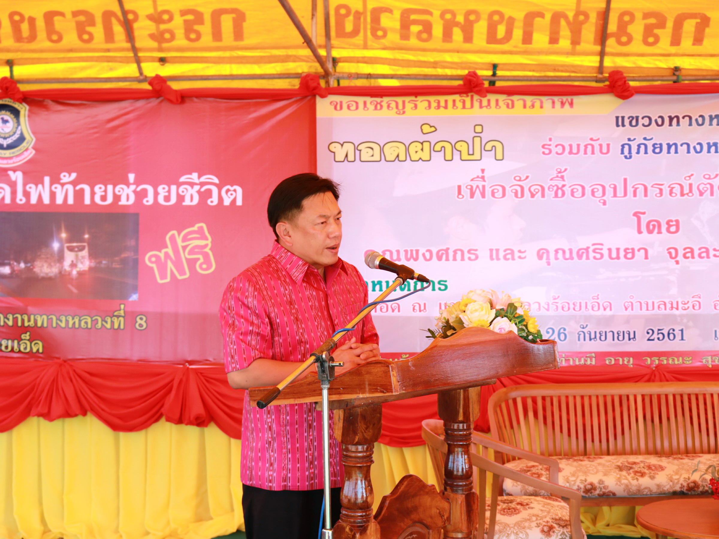 นายพงศกร จุลละโพธิ ผู้อำนวยการแขวงทางหลวงร้อยเอ็ด คณะเจ้าหน้าที่แขวงทางหลวงร้อยเอ็ด ร่วมกับกู้ภัยทางหลวงร้อยเอ็ด ร่วมทอดผ้าป่า เพื่อจัดซื้ออุปกรณ์ตัดถ่างช่วยชีวิต และร่วมเปิดโครงการเปลี่ยนหลอดไฟท้ายคืนชีวิต โดยมี นายวันชัย คงเกษม ผู้ว่าราชการจังหวัดร้อยเอ็ด เป็นประธานในพิธี ณ สำนักงานแขวงทางหลวงร้อยเอ็ด