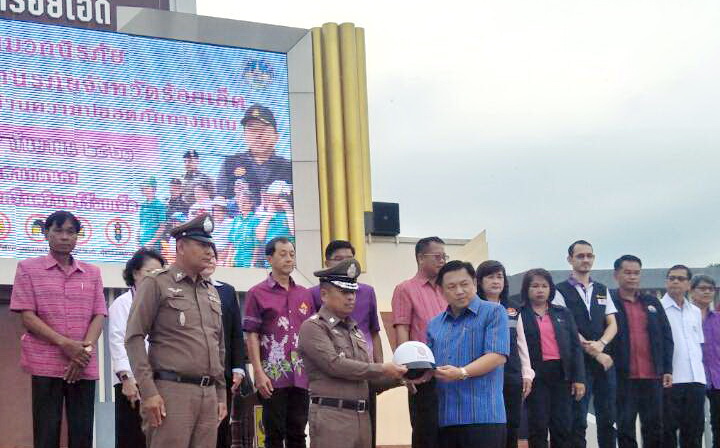 แขวงทางหลวงร้อยเอ็ด พร้อมด้วยส่วนราชการในจังหวัดร้อยเอ็ด ร่วมพิธีมอบหมวกนิรภัยจาก "โครงการผ้าป่าหมวกนิรภัยจังหวัดร้อยเอ็ด" เพื่อสนับสนุนโครงการส่งเสริมมาตรการองค์กรเพื่อความปลอดภัยทางถนนในสถานศึกษา จังหวัดร้อยเอ็ด จำนวน 3,400 ใบ โดยมีนายวันชัย คงเกษม ผู้ว่าราชการจังหวัดร้อยเอ็ด เป็นประธานในพิธี ณ ลานสาเกตนคร สวนสมเด็จพระศรีนครินทร์ร้อยเอ็ด อำเภอเมืองร้อยเอ็ด