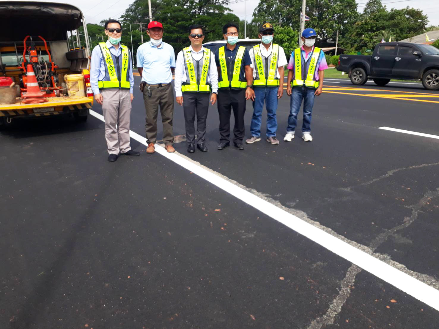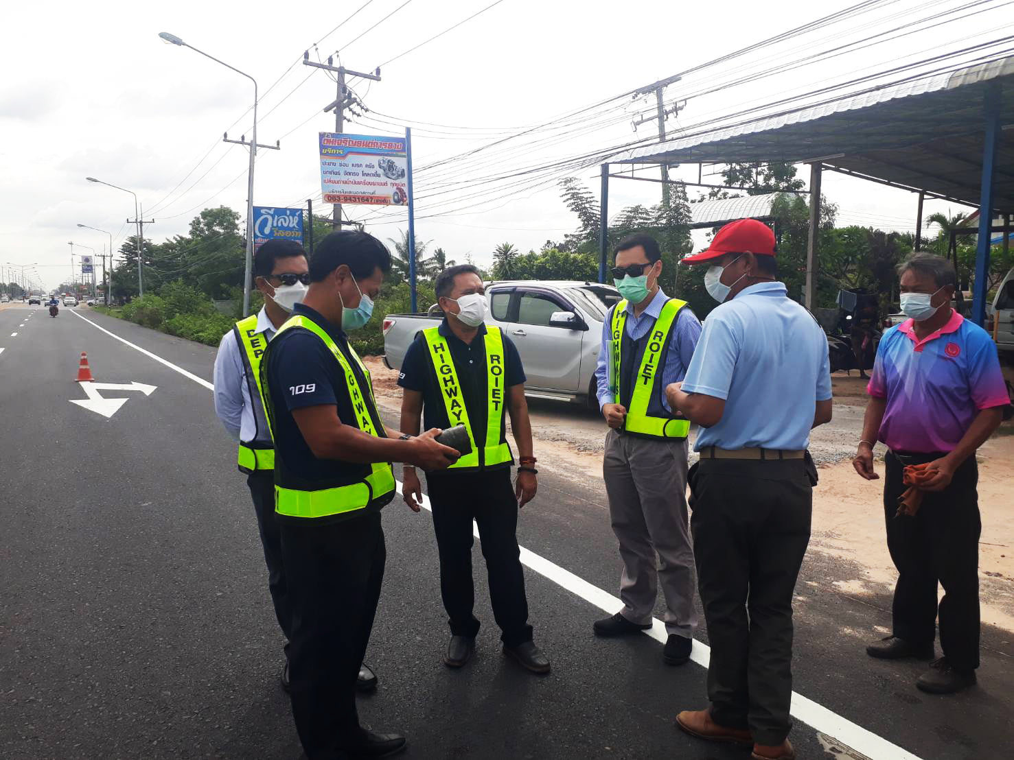 นายปรัชญา นารถน้ำพอง รองผู้อำนวยการสำนักงานทางหลวงที่ 8 (มหาสารคาม) ตำแหน่งที่ 2 ประธานกรรมการตรวจการจ้าง ,นายเกียรติพงษ์ เจียรนัยธนะกิจ ผู้อำนวยการแขวงทางหลวงร้อยเอ็ด พร้อมด้วยคณะกรรมการฯ ร่วมตรวจงานก่อสร้าง กิจกรรมบำรุงรักษาทางหลวงประจำปีงบประมาณ 2564 งานปรับปรุงผิวทางแอสฟัลต์คอนกรีตเดิมนำกลับมาใช้ใหม่ ในทางหลวงหมายเลข 2045 ตอน ร้อยเอ็ด - หนองคูโคก ระหว่าง กม.4+300 - กม.8+975 โดยมี บริษัท ยิ่งเจริญก่อสร้างบุรีรัมย์ จำกัด เป็นผู้รับจ้าง