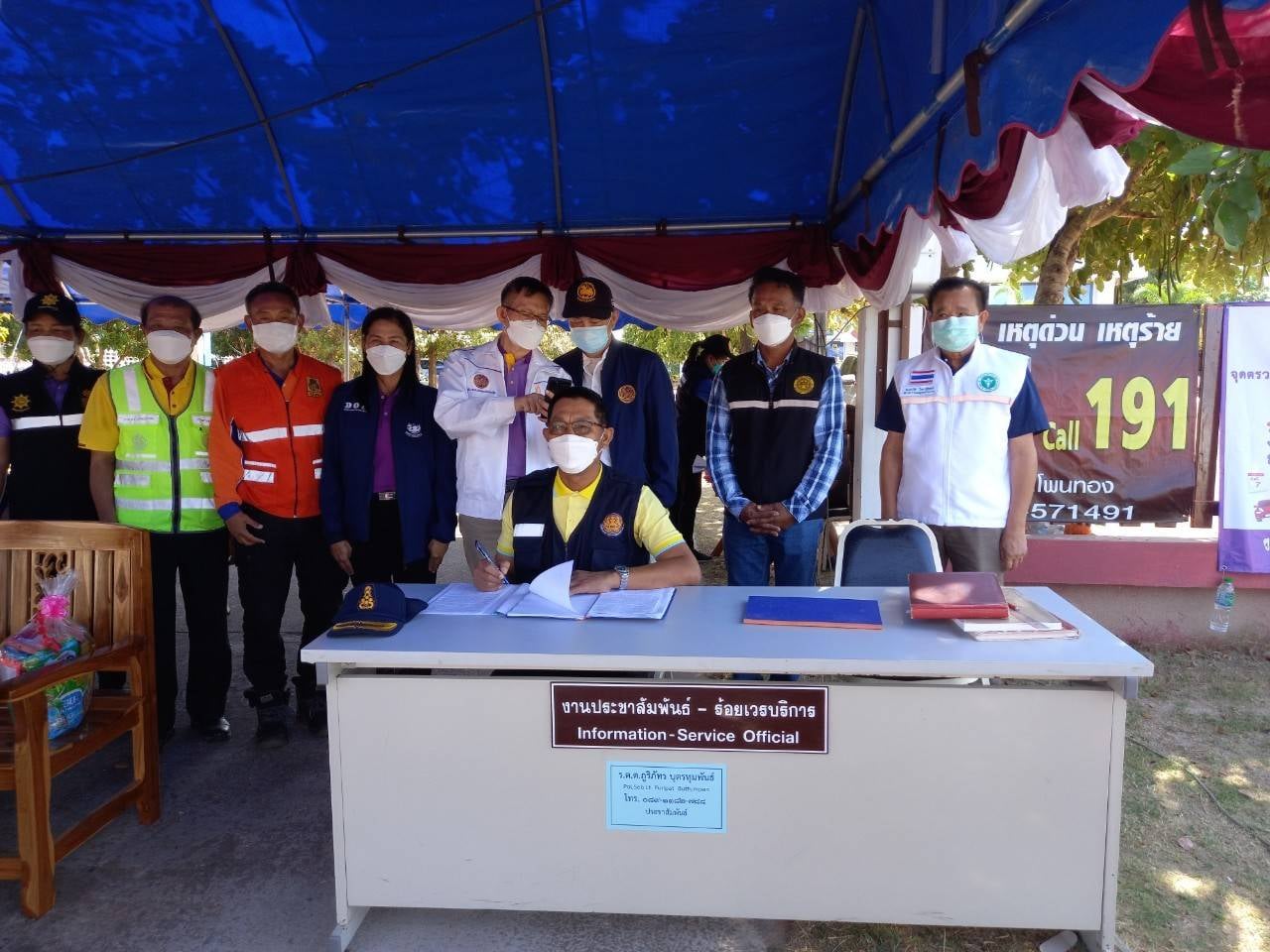 นายสถิต คำพิชิต รองผู้อำนวยการแขวงทางหลวงร้อยเอ็ด ฝ่ายปฏิบัติการ เข้าร่วมประชุมและแถลงข่าวผลการ ดำเนินการป้องกันและลดอุบัติเหตุทางถนนช่วงเทศกาลปีใหม่ พ.ศ. 2565 และร่วมออกตรวจเยี่ยมให้กำลังใจผู้ปฏิบัติงานประจำจุดตรวจในการป้องกันและลดอุบัติเหตุทางถนนช่วงเทศกาลปีใหม่ พ.ศ. 2565 จังหวัดร้อยเอ็ด ในจุดตรวจที่ 1 ณ จุดตรวจตู้ยามบัวคำ ต.บัวคำ อ.โพธิ์ชัย ,จุดตรวจที่ 2 ณ จุดตรวจหน้าสถานีตำรวจภูธรโพนทอง ต.สระนกแก้ว อ.โพนทอง ,จุดตรวจที่ 3 ณ จุดตรวจสี่แยกเทศบาล ต.เมยวดี อ.เมยวดี และจุดตรวจที่ 4 ณ จุดตรวจสี่แยกหน้าสถานีตำรวจภูธรหนองพอก ต.หนองพอก อ.หนองพอก พร้อมกับมอบของเพื่อเป็นขวัญและกำลังใจแก่เจ้าหน้าที่ปฏิบัติงาน ในการอำนวยความสะดวกปลอดภัยให้กับประชาชนผู้ใช้เส้นทางในช่วงเทศกาลปีใหม่ พ.ศ. 2565 (ระหว่างวันที่ 29 ธ.ค. 64 – 4 ม.ค. 65)