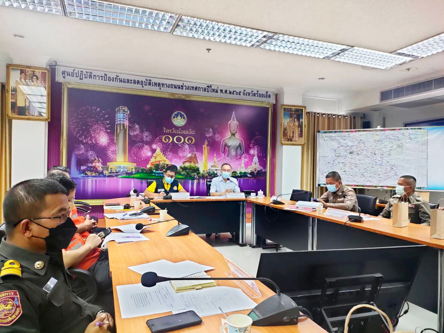 นายสถิต คำพิชิต รองผู้อำนวยการแขวงทางหลวงร้อยเอ็ด ฝ่ายปฏิบัติการ เข้าร่วมประชุมและแถลงข่าวผลการดำเนินการป้องกันและลดอุบัติเหตุทางถนนช่วงเทศกาลปีใหม่ พ.ศ. 2565 (ระหว่างวันที่ 29 ธ.ค. 64 - 4 ม.ค. 65) ร่วมกับหัวหน้าส่วนราชการในจังหวัดร้อยเอ็ด ประจำวันที่ 1 มกราคม 2565 ณ ห้องประชุมพระเวสสันดร ชั้น 3 ศาลากลางจังหวัดร้อยเอ็ด