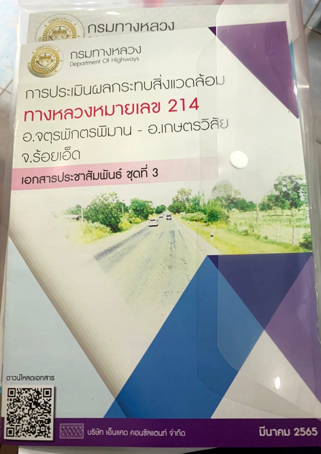 "ประชุมสรุปผลการศึกษาของโครงการ การประเมินผลกระทบสิ่งแวดล้อม ในทางหลวงหมายเลข 214 อ.จตุรพักตรพิมาน - อ.เกษตรวิสัย จ.ร้อยเอ็ด"